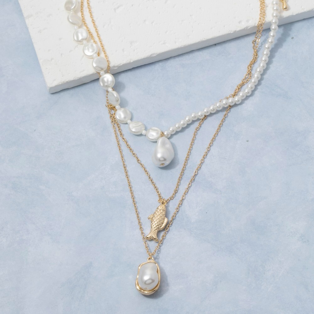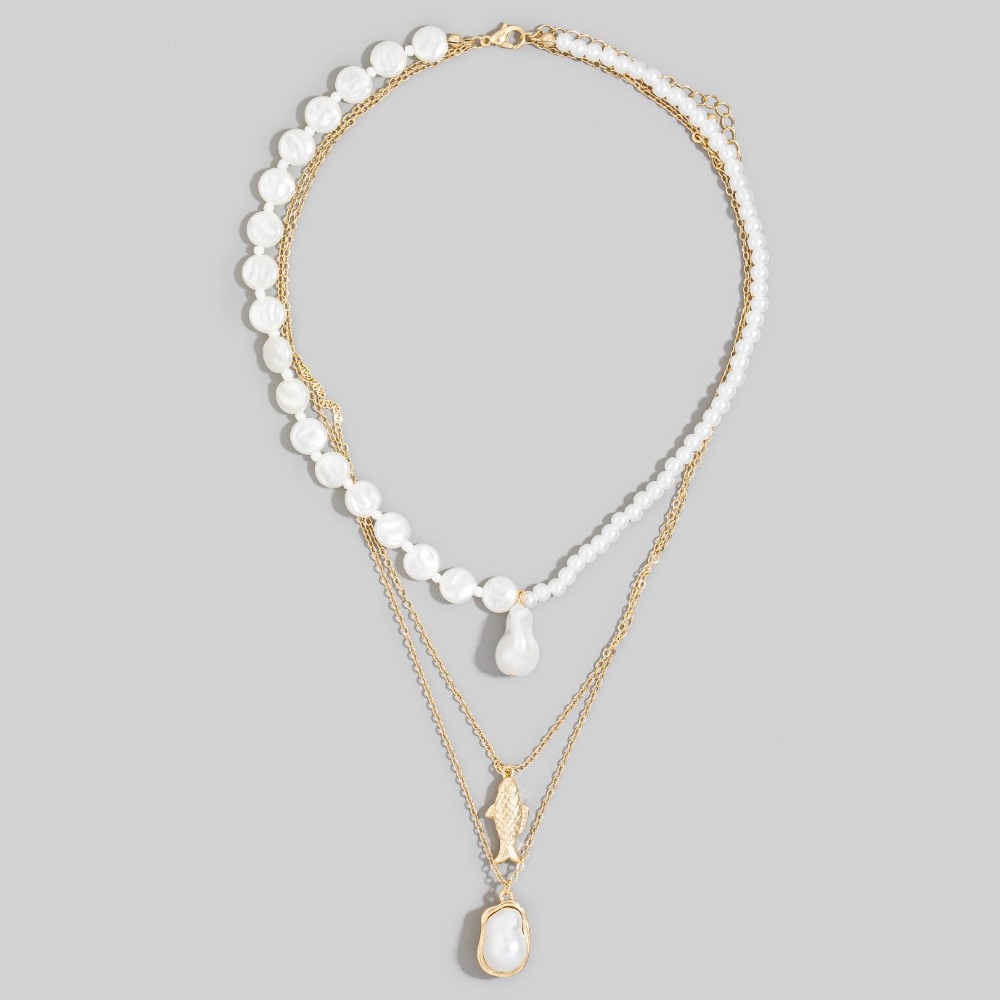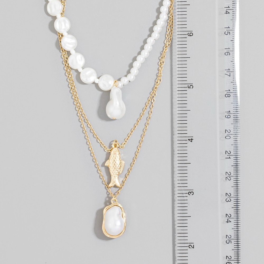 - Elevate any look, this pendant necklace presents a striking layered pearl chain fish design. This item is the perfect way to add some texture and interest to any outfit. Available in GCM. This item is sold in packs of 1.