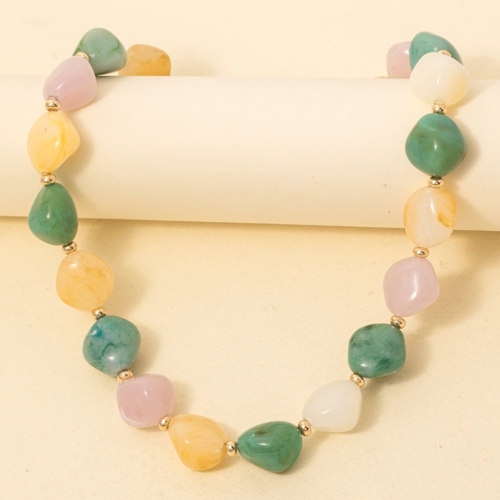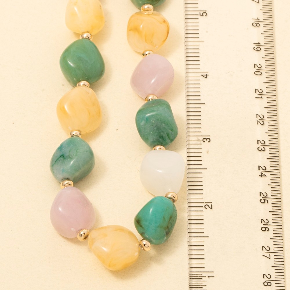 Marble Resin And Metallic Beaded Layered Necklace