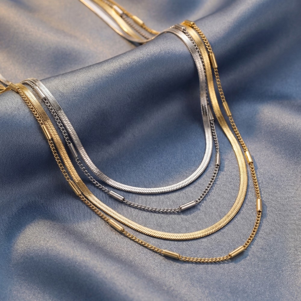 This layered necklace is made with 100% Brass.