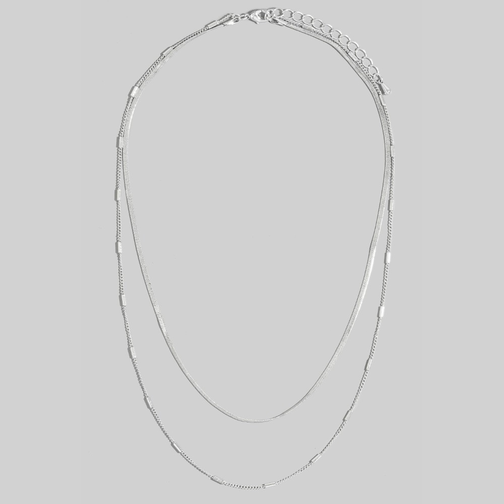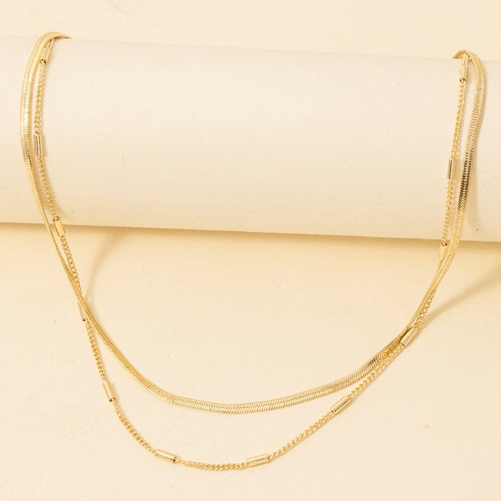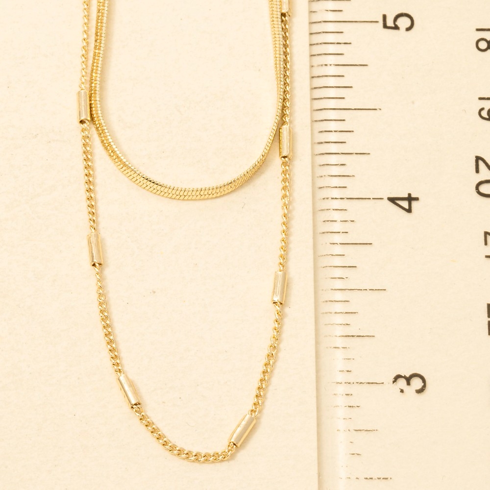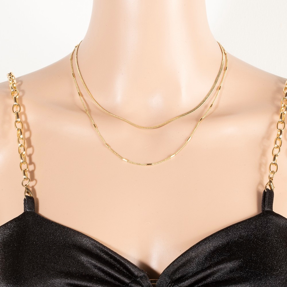 A true work of art, this layered necklace incorporates a remarkable dainty chain double design. Infuse elegance into your daily wardrobe with the versatile charm of this must-have layered necklace. This item is sold in packs of 1.