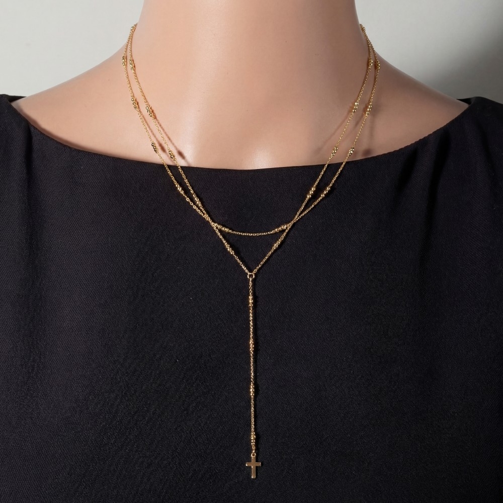 Cross Pendant Lariat Chain Necklace