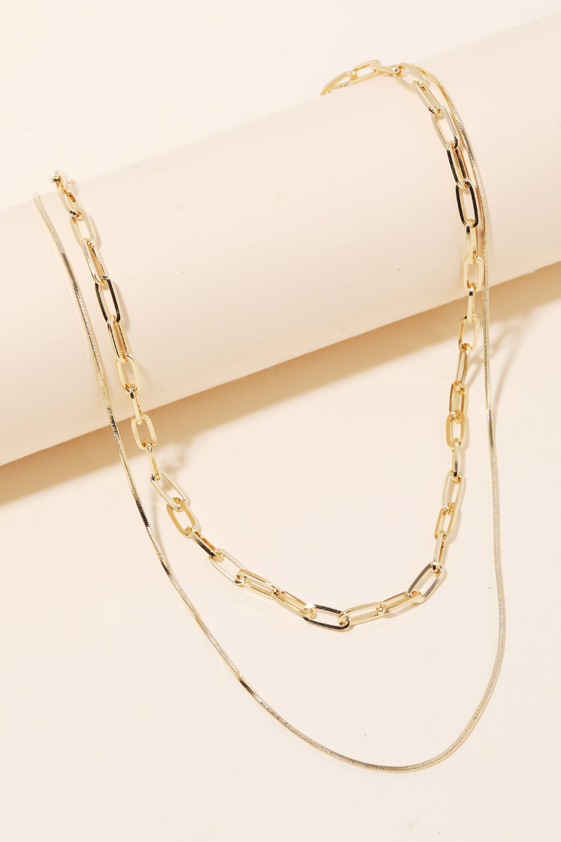 • This is a soon to be trending layered necklace is made with a double chain layered necklace design. Perfect for business casual occasions! Available in G. This item is sold in packs of 1.