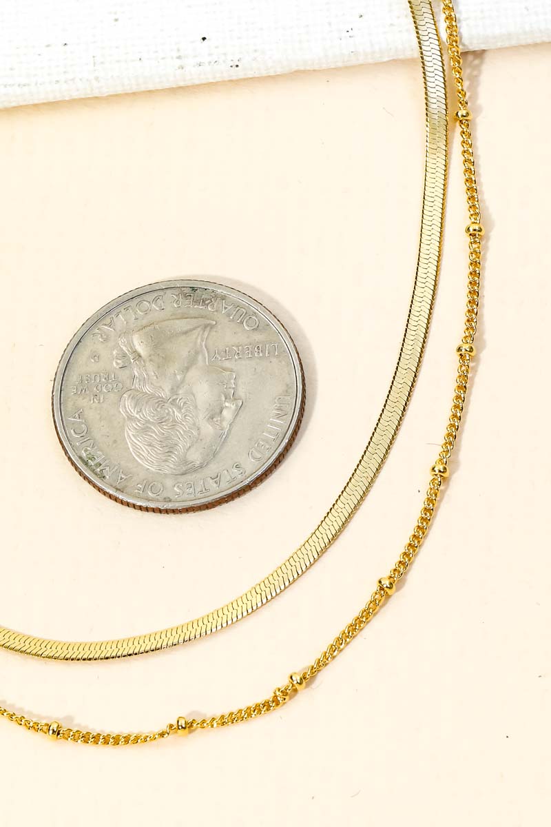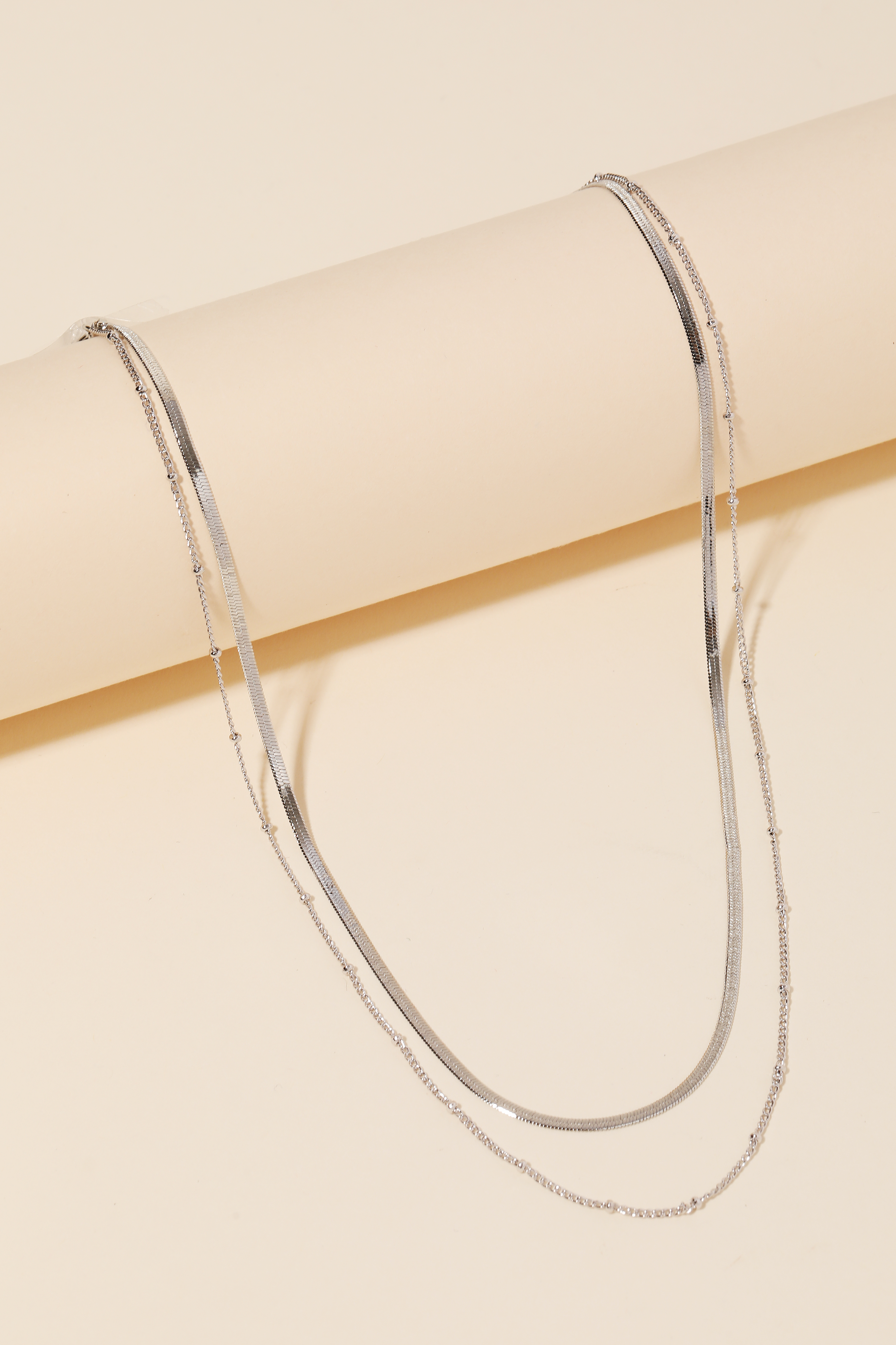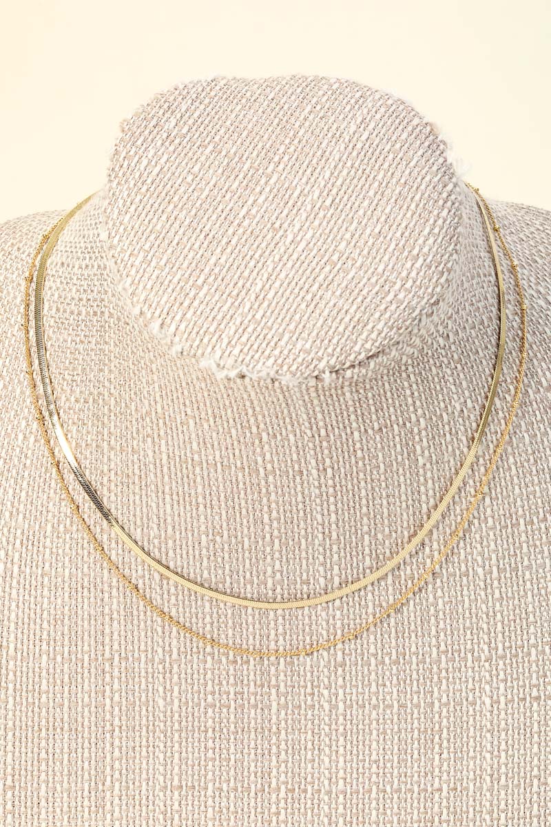 • A gorgeous unique must have trending necklace has a double layered herringbone chain link necklace design. Perfectly fitting for this upcoming season! Available in G.