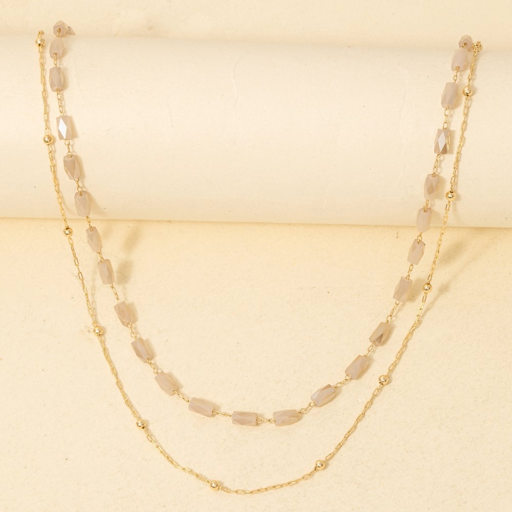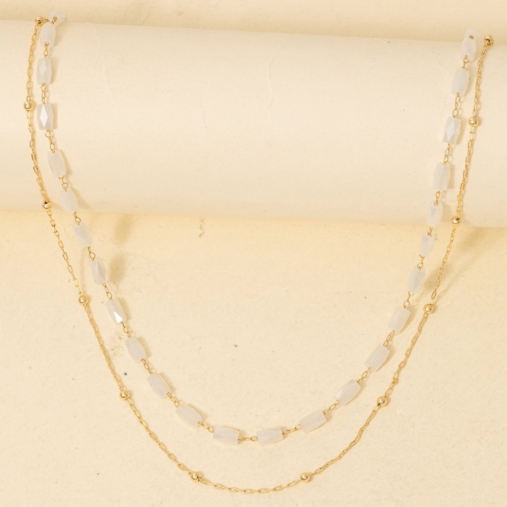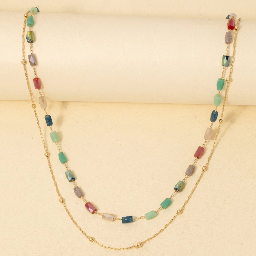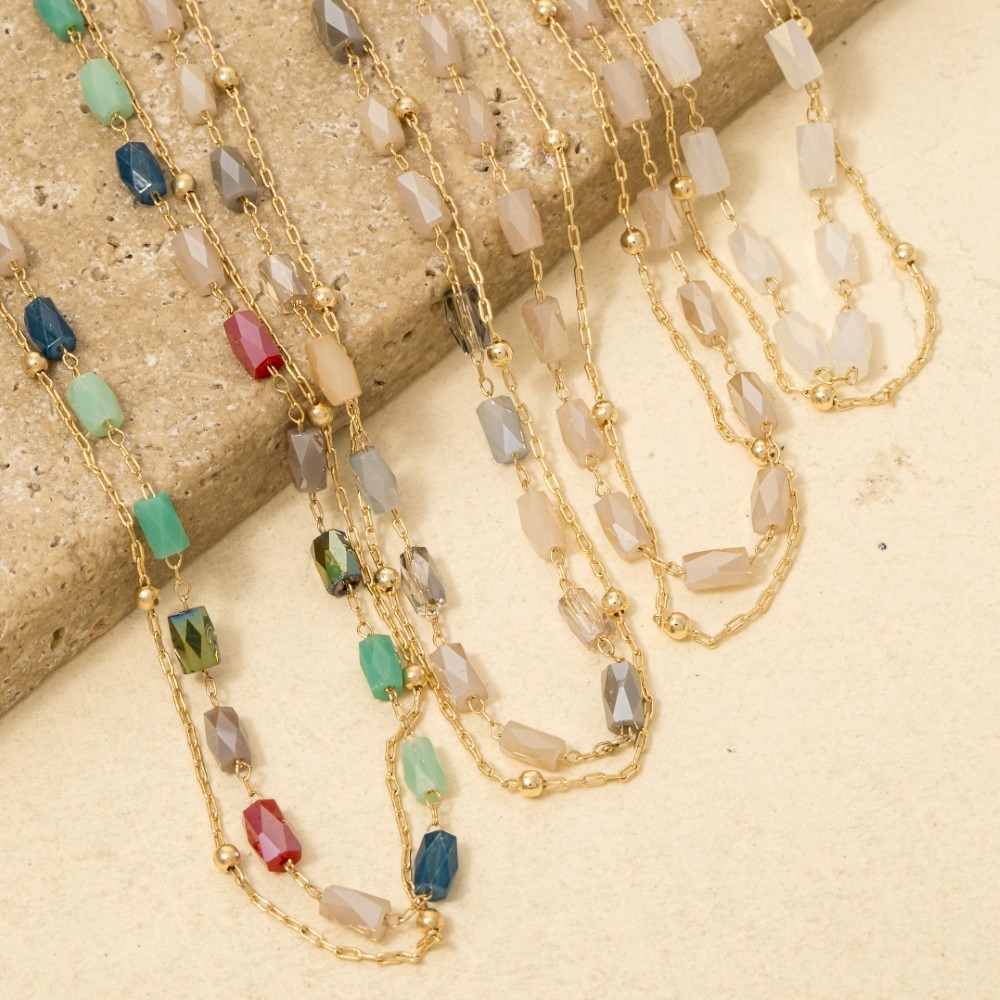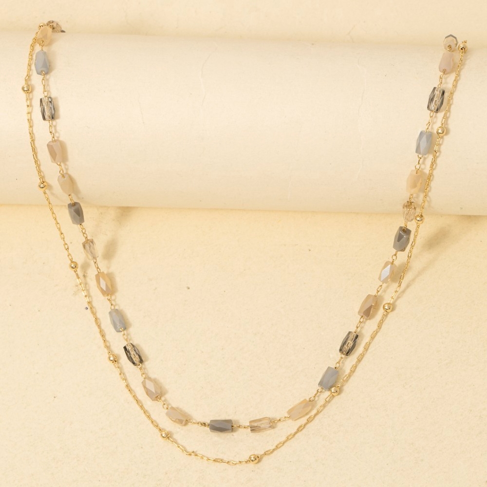 - Chic, sophisticated, and always in style, this chain necklace comes with a special faceted glass beads layered dainty design. Elevate your personal style effortlessly with this versatile chain necklace, an essential component for a refined wardrobe. Available in GDMIV, GDMU, GDPK, GDWH. This item is sold in packs of 1.