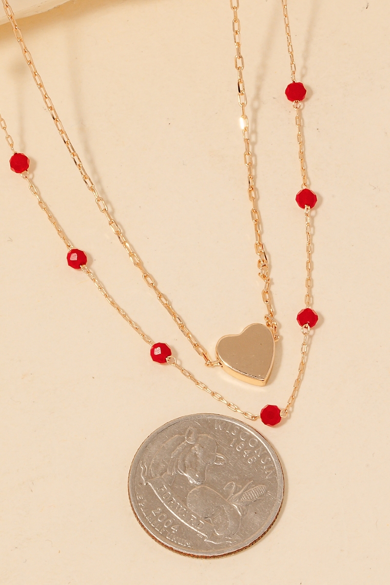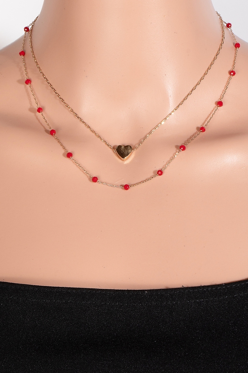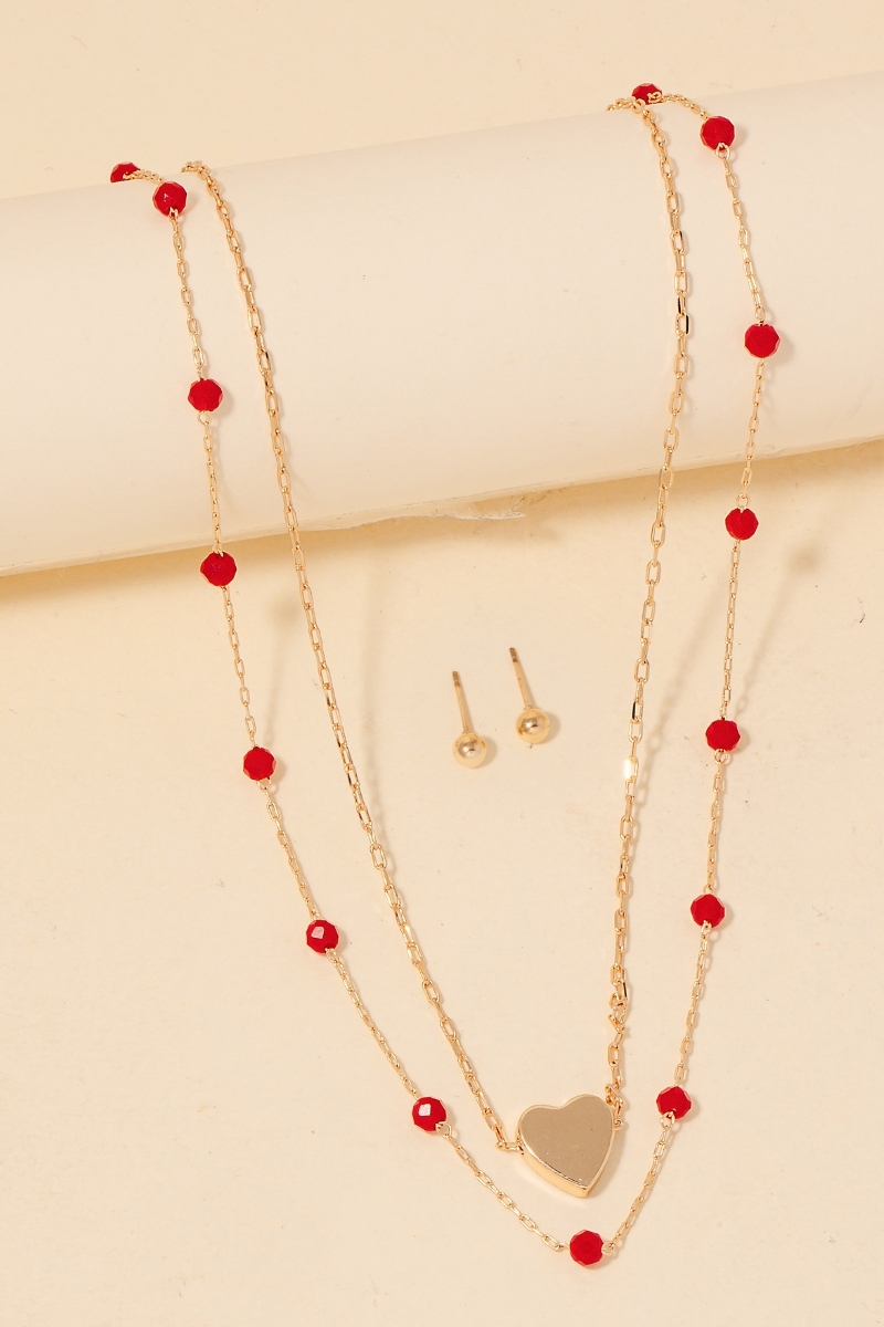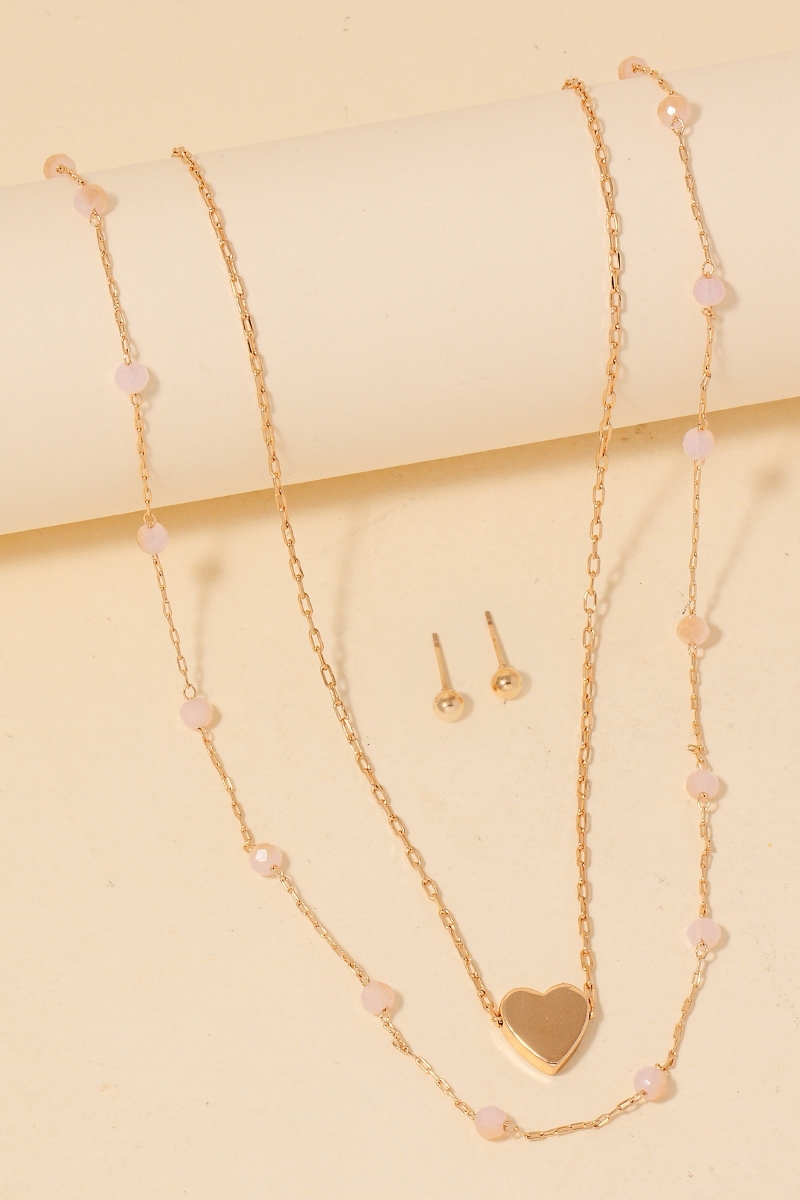 Glass Station Beaded Heart Pendant Layered Necklace Set