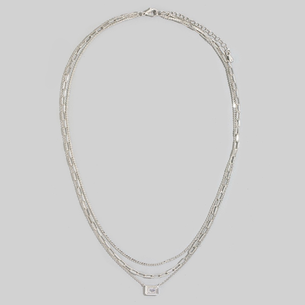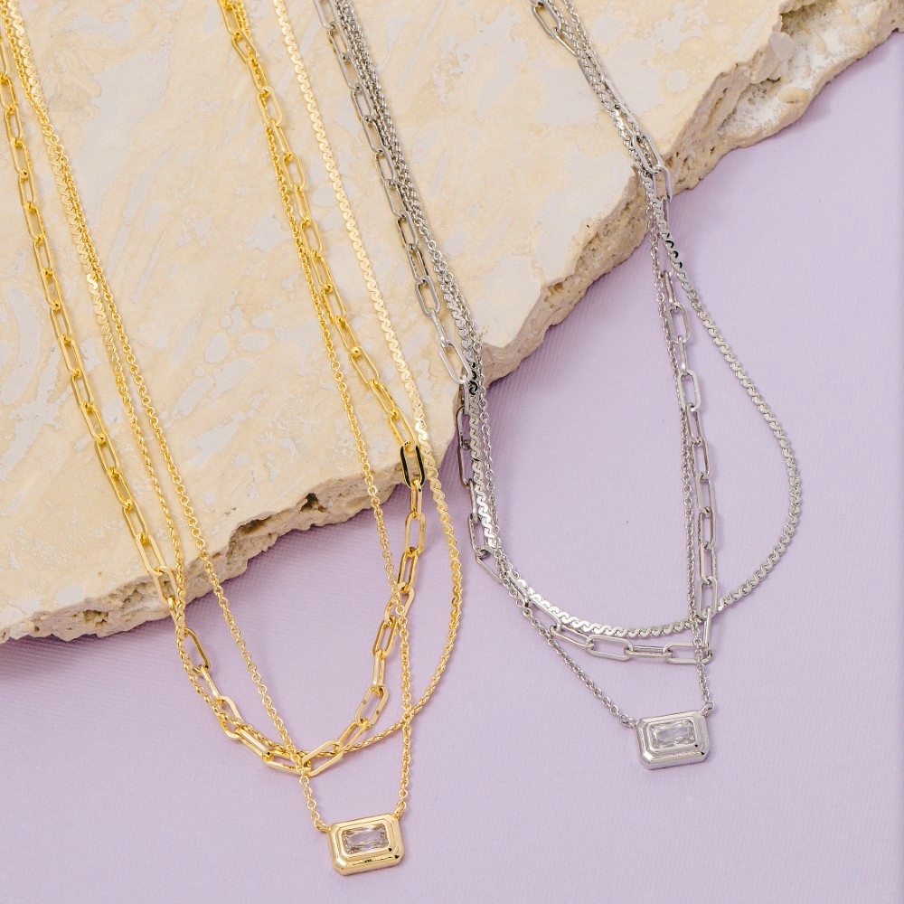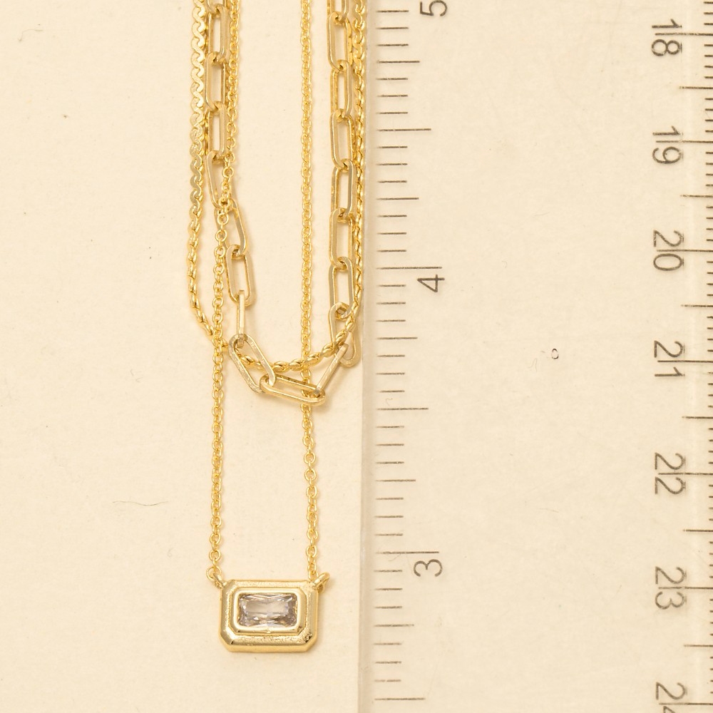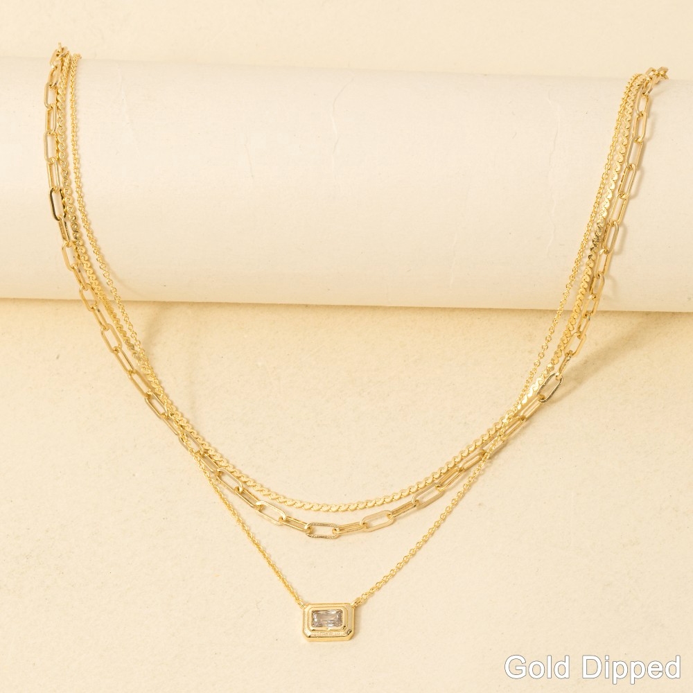 • A timeless piece that will never go out of style, this necklace comes with a special gold dipped cubic zirconia baguette pendant layered chains design. Unleash the charm of this versatile necklace, effortlessly turning any outfit into a fashion statement. Available in GOLD. This item is sold in packs of 1.