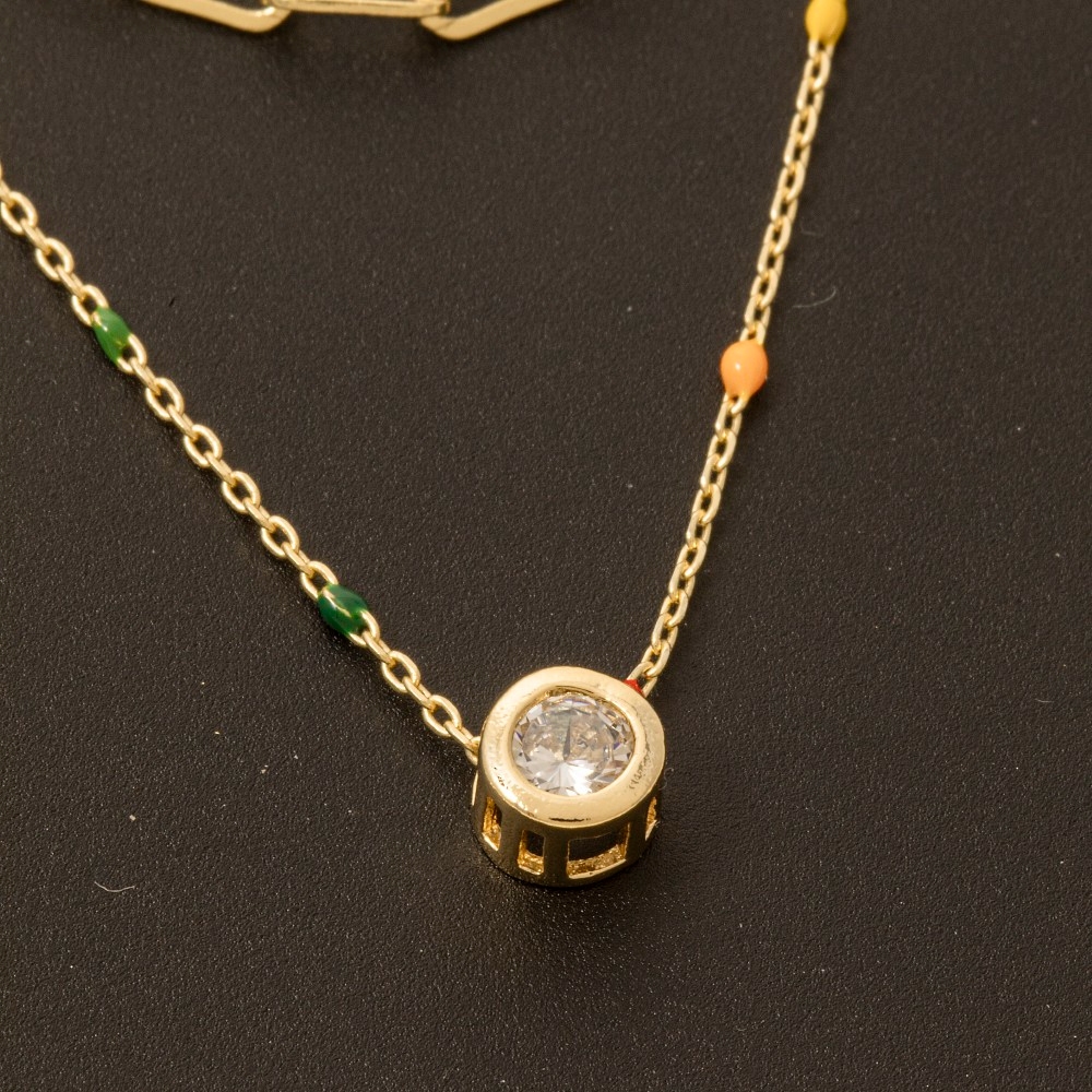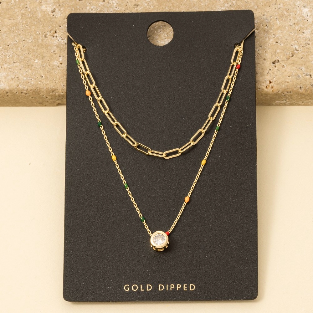 • This piece is designed to make a statement, This columbus jewelry necklace radiates a sleek gold dipped mixed enamel drops cubic zirconia pendant design. Transform your outfit into a fashion masterpiece with this versatile layered necklace, an essential for the style-conscious individual. Available in GOLD. This item is sold in packs of 1.