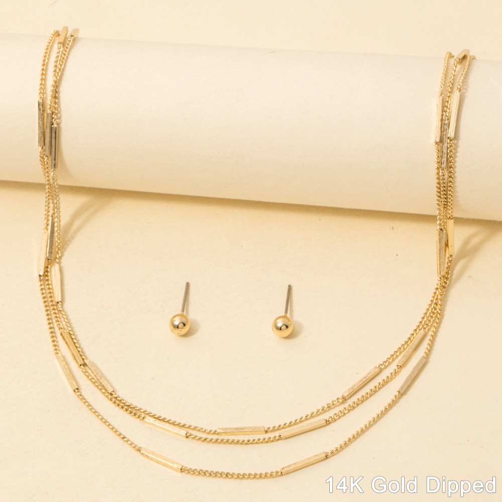 • Sleek, modern, and always stylish, this chain necklace includes a stunning gold dipped layered bar station classic set design. Master the art of accessorizing with this versatile chain necklace, a key element for achieving a chic and polished look. Available in KGD. This item is sold in packs of 1.