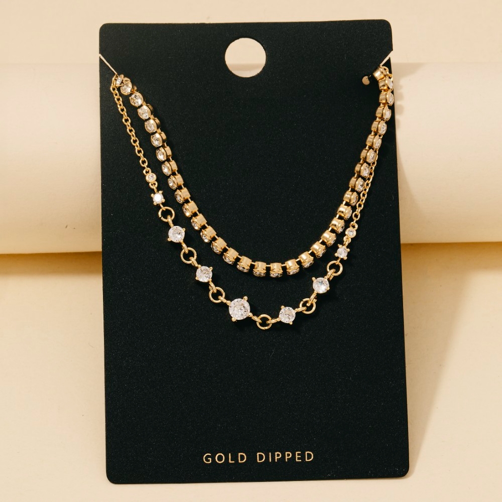 - This season's must-have layered necklace, this columbus jewelry necklace contains a special gold dipped round cubic zirconia gems and chain design. Transform your outfit from ordinary to extraordinary with the touch of elegance provided by this versatile layered necklace. Available in GOLD. This item is sold in packs of 1.
