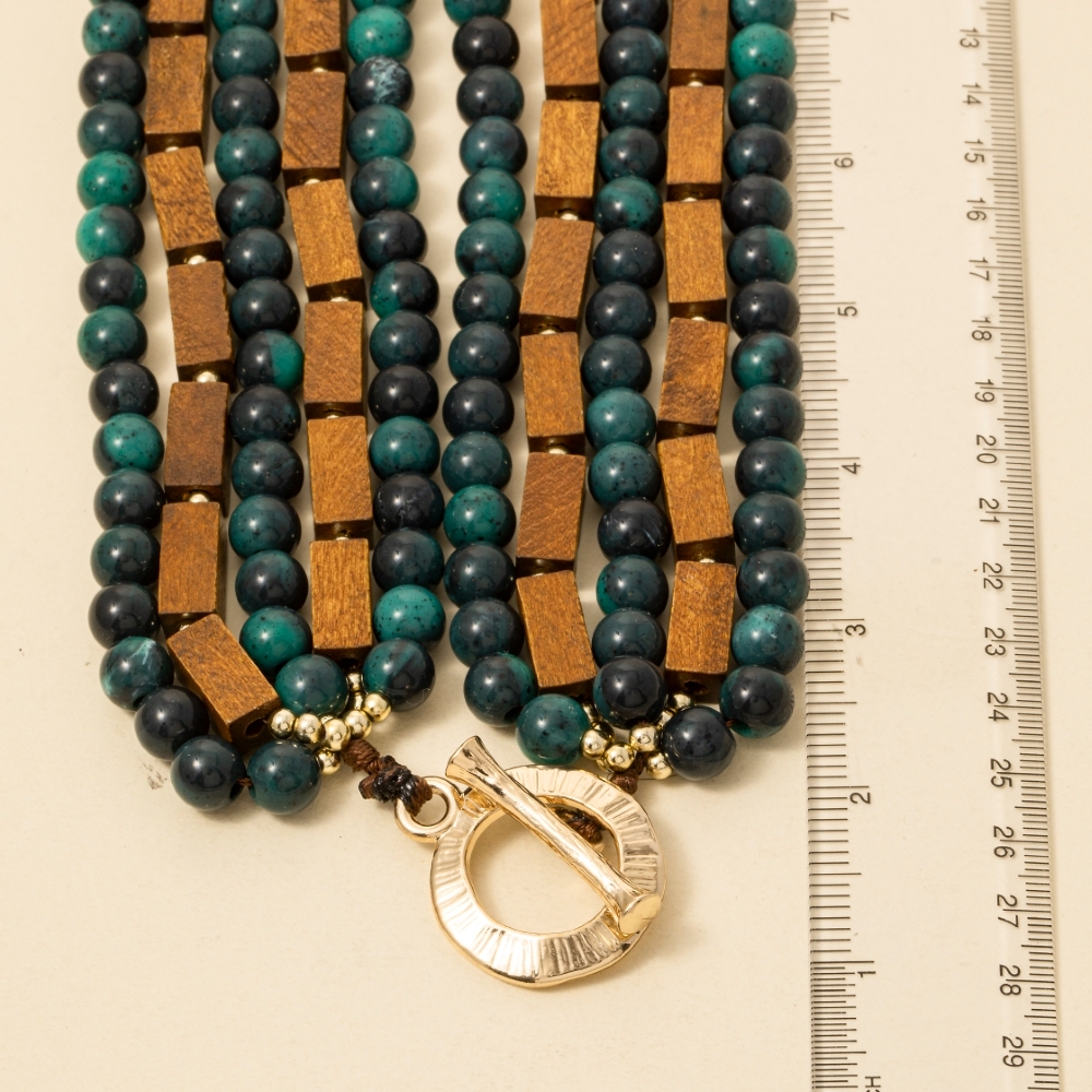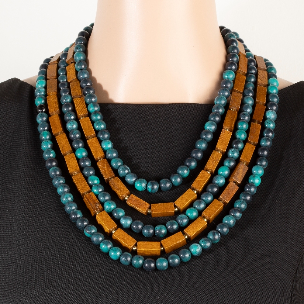 Gold Dipped Wood And Acrylic Beaded Statement Necklace
