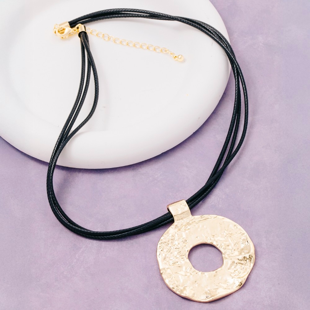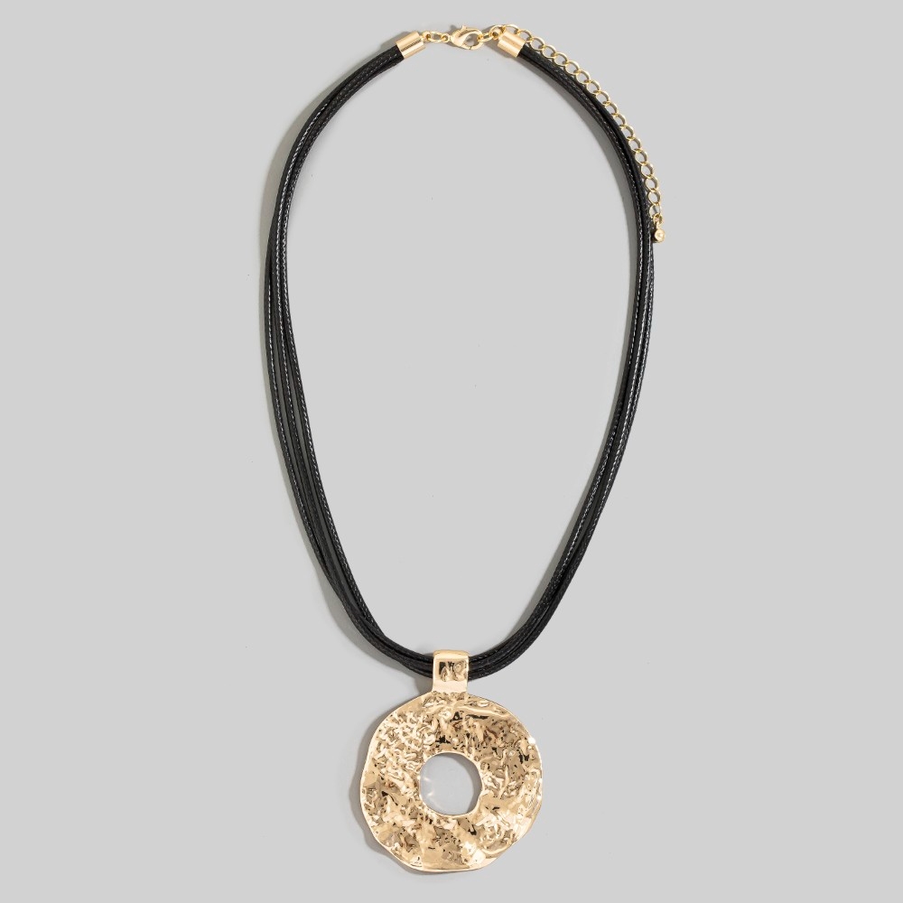 • The epitome of sophistication and style, this necklace flaunts a luxurious hammered circle pendant layered cord design. Redefine your wardrobe with this versatile necklace, a timeless addition that brings an air of sophistication to any look. Available in GB, GT, SB. This item is sold in packs of 1.