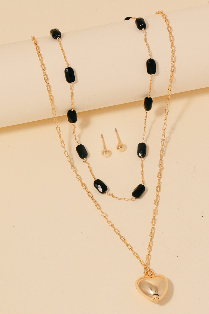 • This layered necklace displays a fashionable heart pendant glass station beaded set style. Delight in the intricate details that make this layered necklace an essential element in expressing your fashion identity.