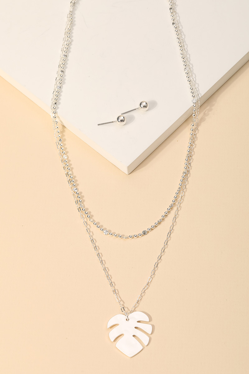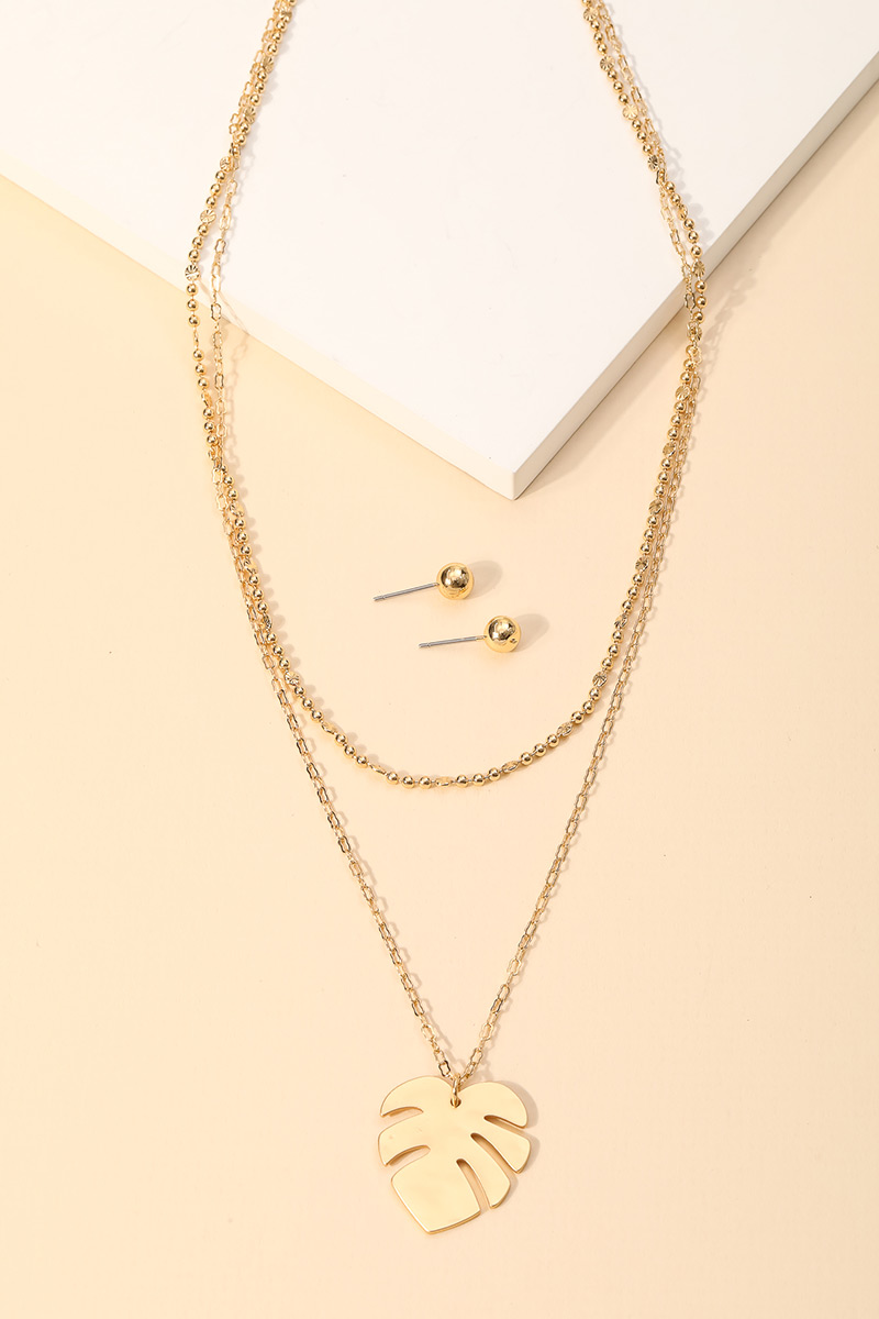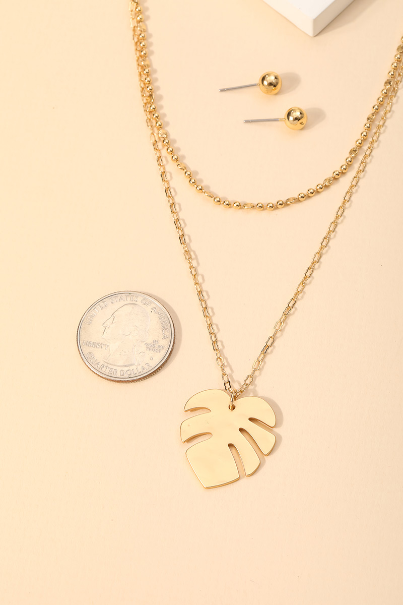 • "This very stunning, classy, unique, trending and an absolute must have in season necklace that has a beautiful layered chain link monstera leaf pendant necklace set design. A chic must have for this winter season! Available in SMG and SMS. "