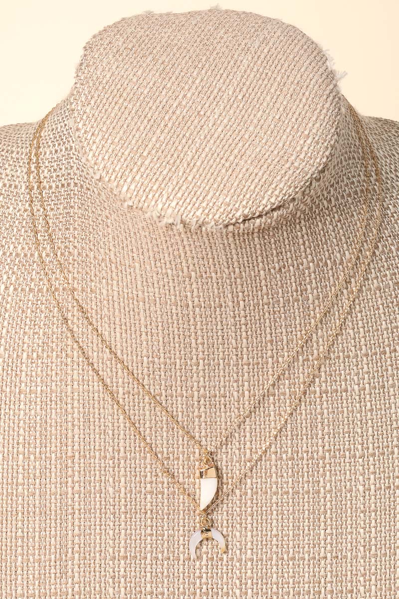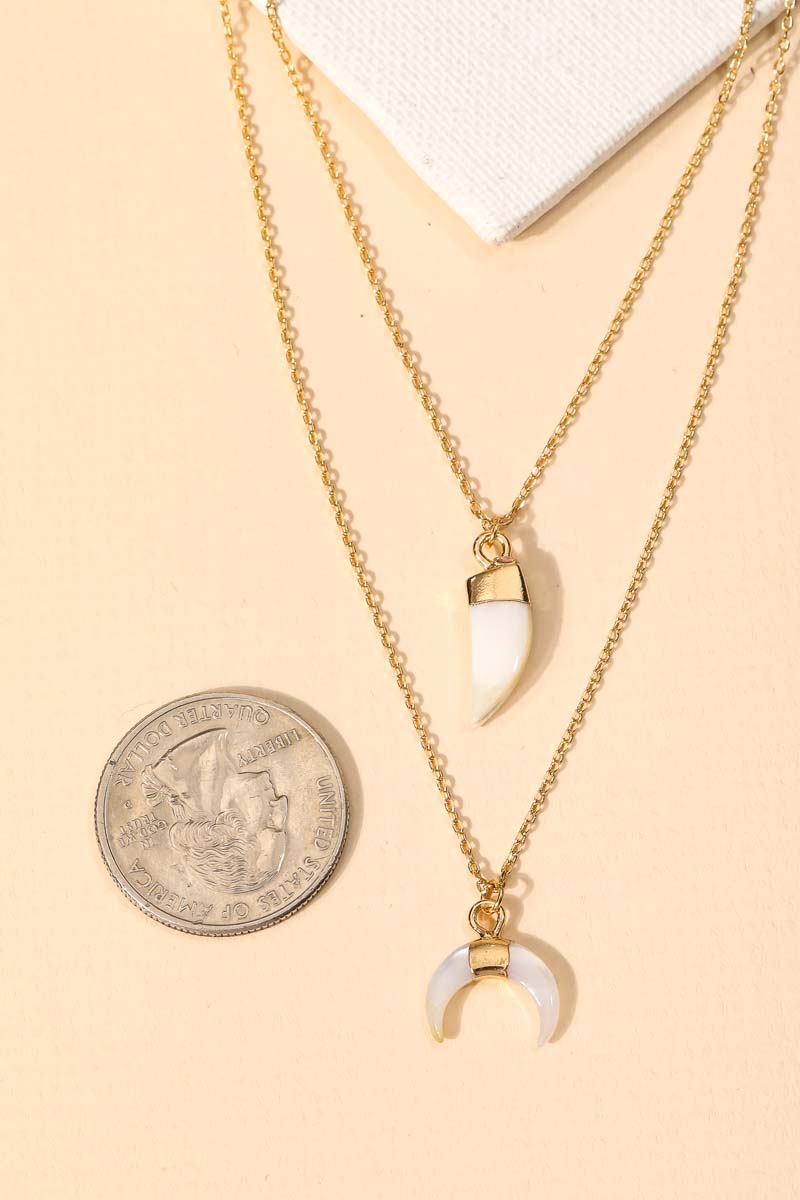 A charming chic unique must have trending in season necklace that features a layered chain tooth horn charm necklace design. Thi