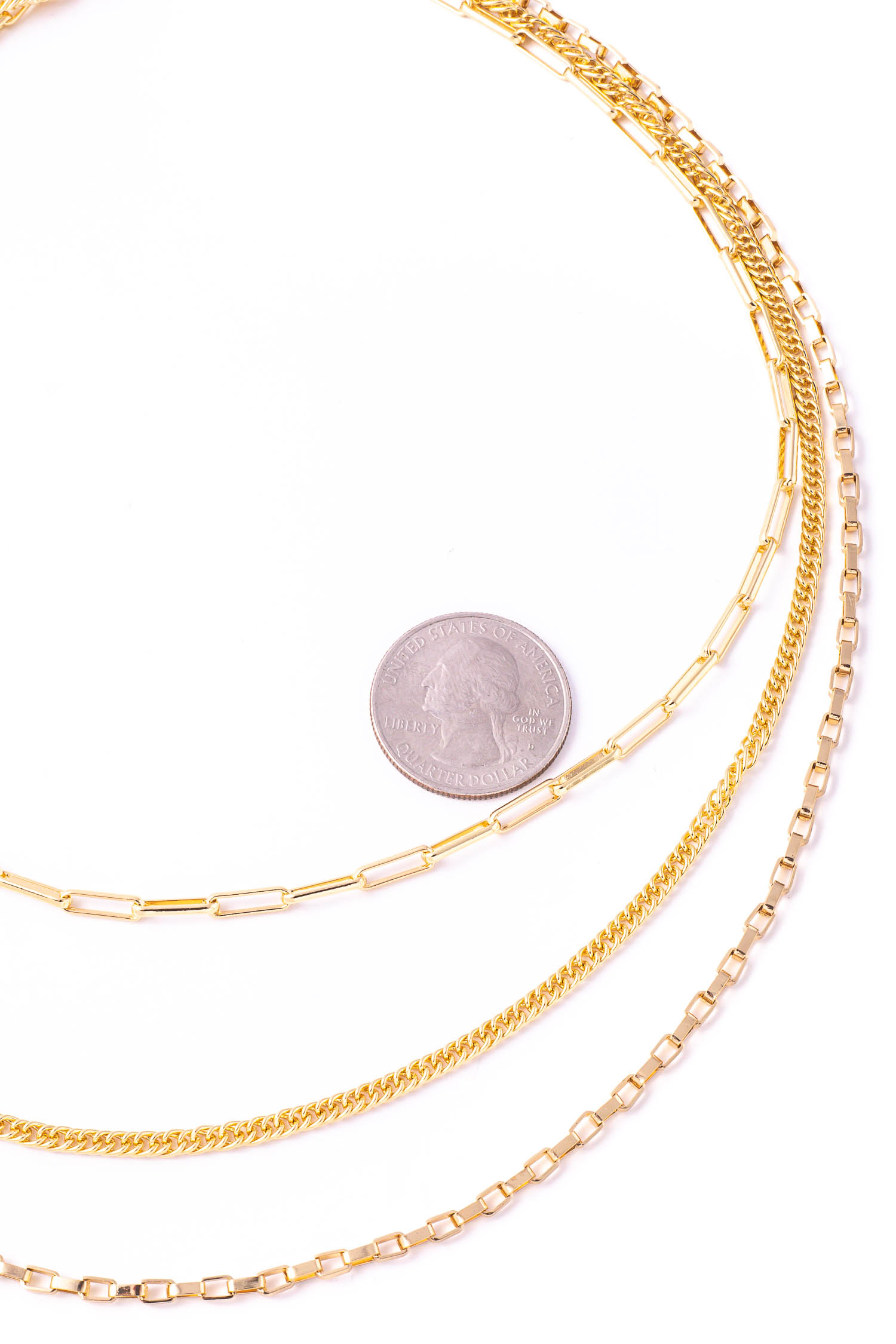 Gold Dipped Ridged Heart Pendant Layered Necklace