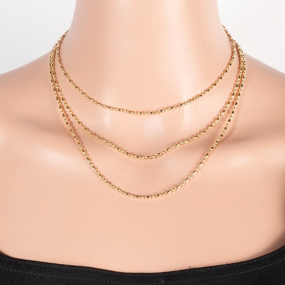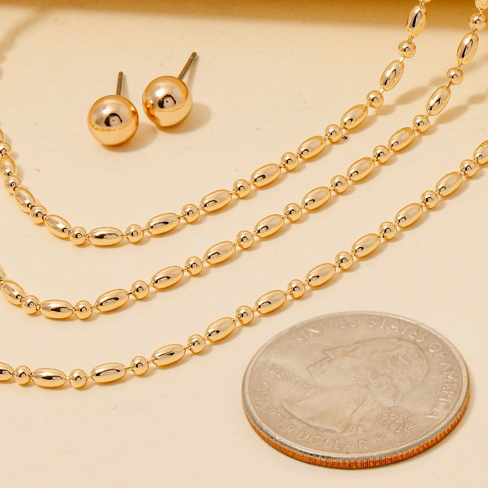 • The perfect way to add some sparkle to your outfit, this layered necklace emanates an elegant metallic oval beaded set design. Elevate your style effortlessly with this versatile layered necklace, enhancing the appeal of any ensemble. Available in GD, SIL. This item is sold in packs of 1.