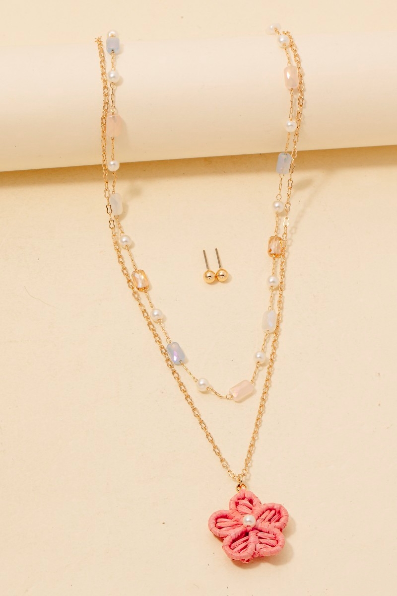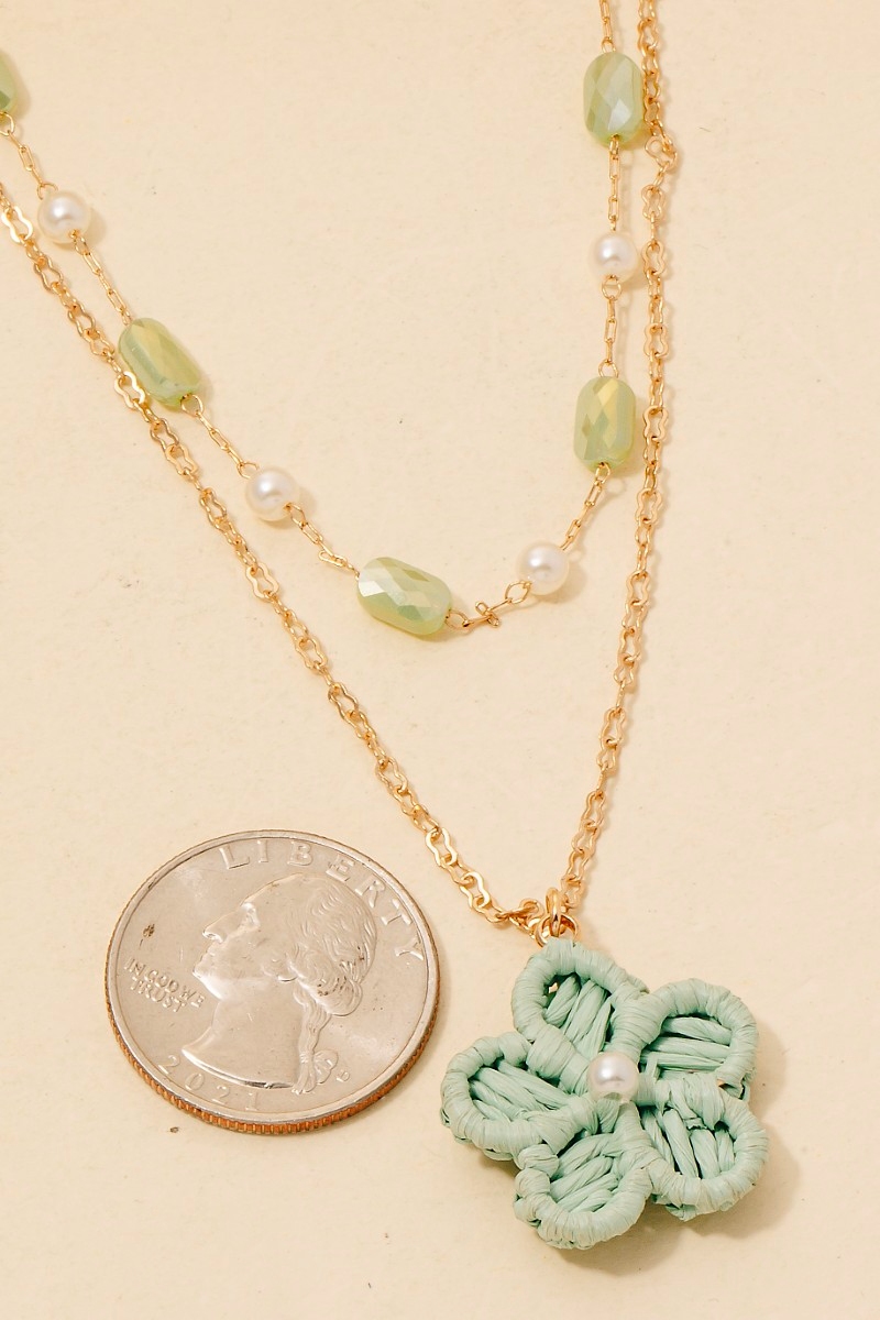 • Effortlessly chic and sophisticated, this layered necklace showcases a breathtaking paper flower pendant mixed beaded set design. Experience the transformative power of this versatile layered necklace, effortlessly enhancing the overall aesthetic of your outfit. Available in LMULTIPEAC, MINTMINT, WHITEWHITE. This item is sold in packs of 1.