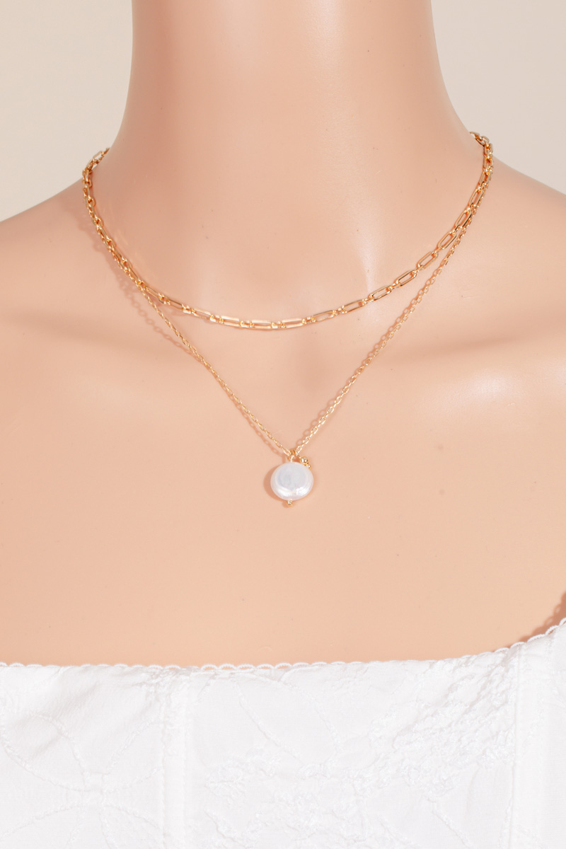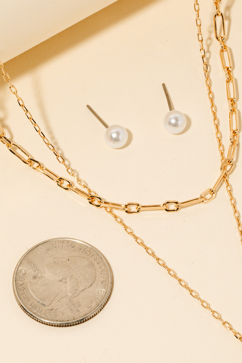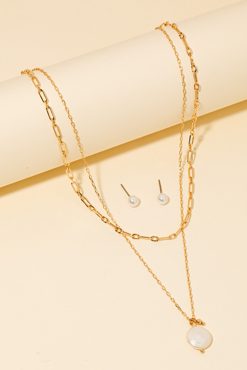 Add some edge to your wardrobe, this layered necklace embodies a sophisticated pearl disc pendant set design. It also features a pearl ball stud earrings and water resistant. Perfect for adding a touch of glamour and sophistication to any outfit, this layered necklace is a must-have. Available in CRMGD. This item is sold in packs of 1.