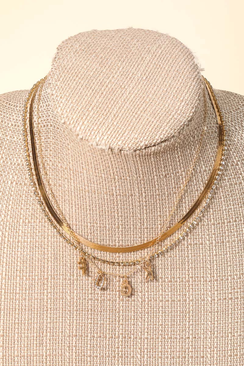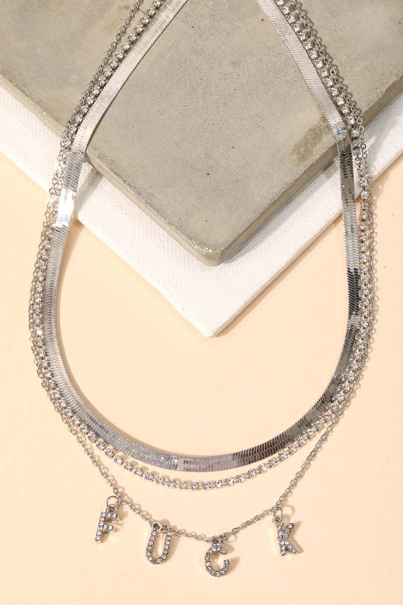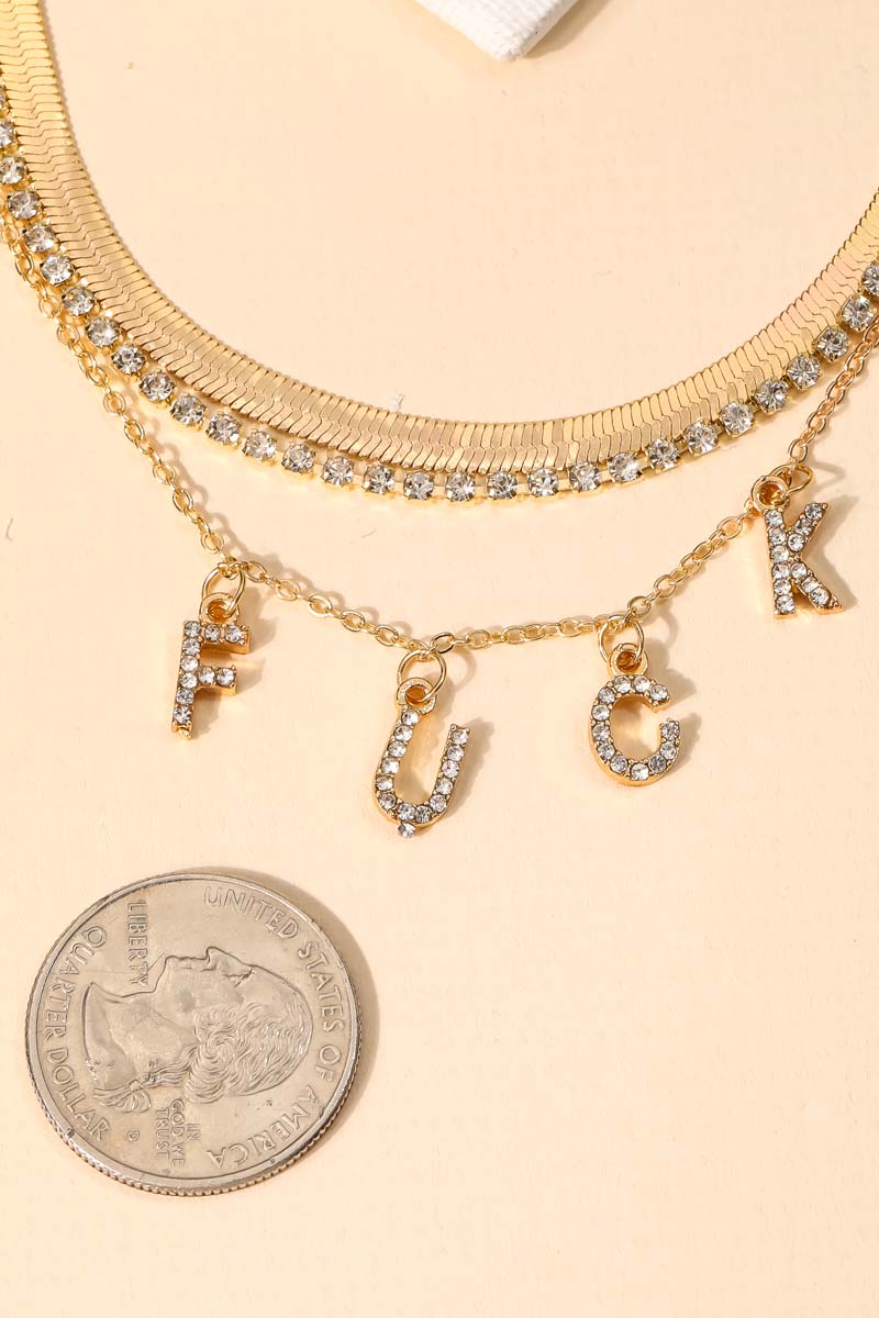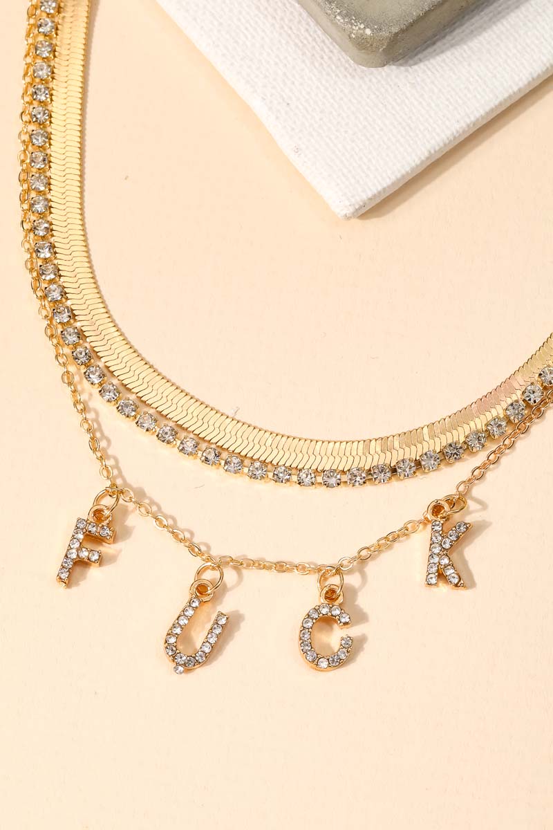 A popular trending necklace have a rhinestone fuck pring necklace design. Perfect for casual occasions! Available in G and S.