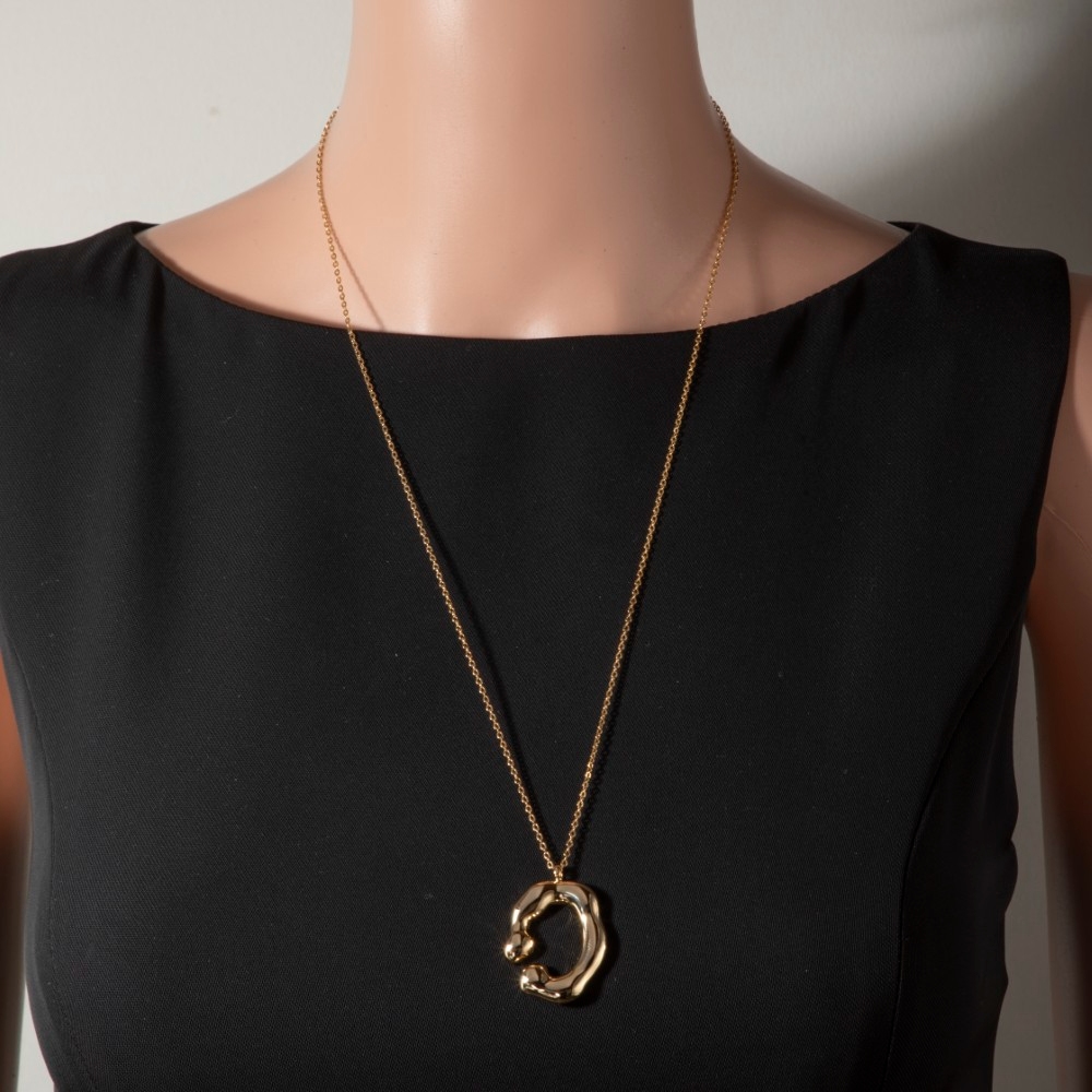 • This long necklace is made with 100% Brass.