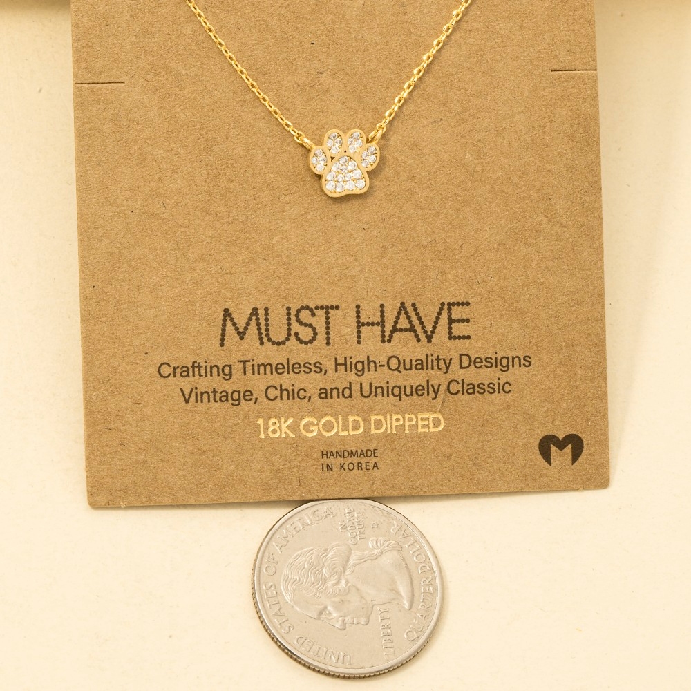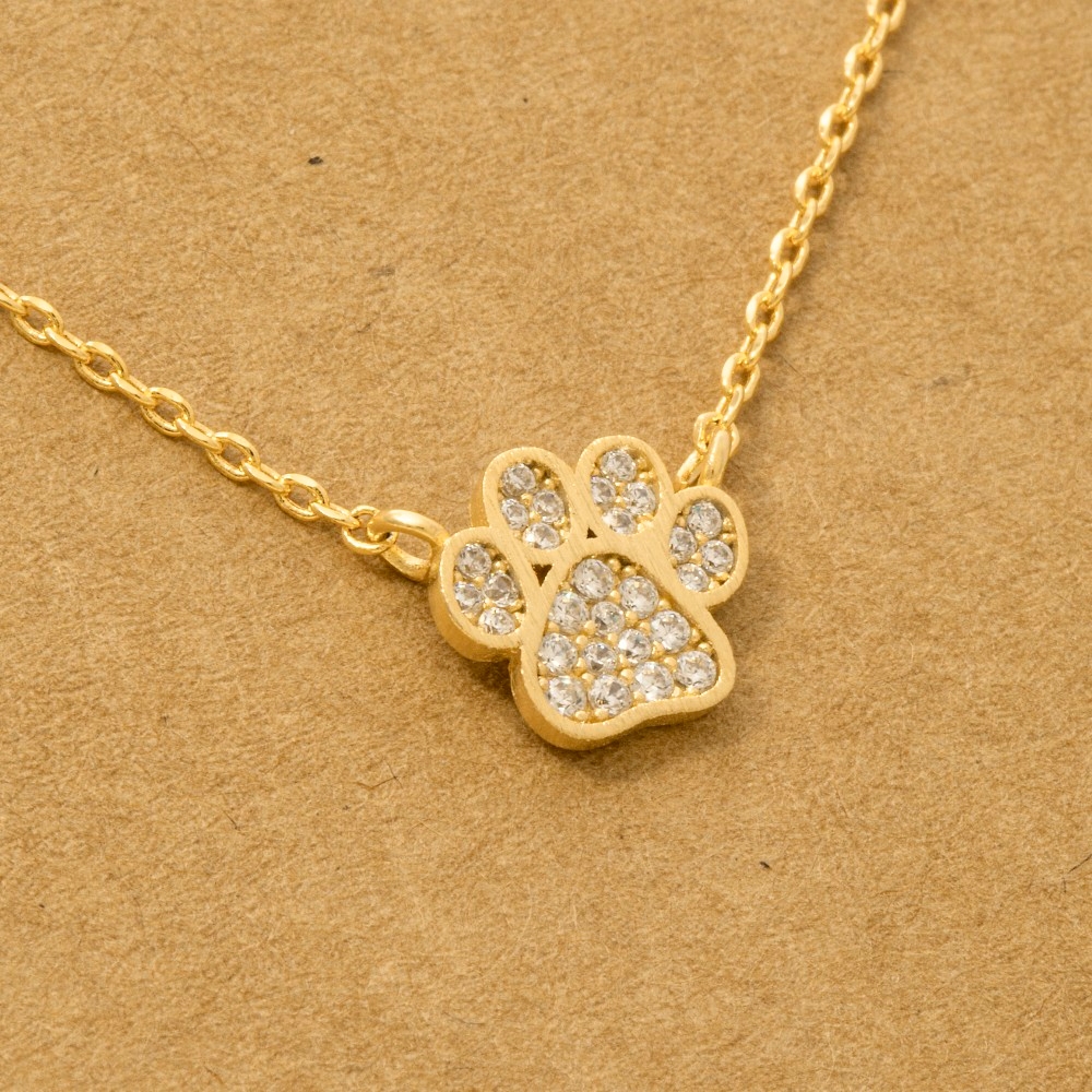 • This piece is both timeless and contemporary, this trending necklace reveals an intricate gold dipped cz pave dog paw pendant necklace design. Redefine your fashion identity with this versatile trending necklace, a timeless piece that complements any wardrobe. Available in G, R, S. This item is sold in packs of 1.