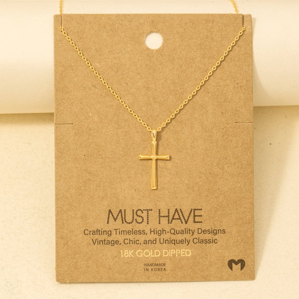 Uniquely designed and endlessly stylish, this trending necklace embodies a sophisticated gold dipped dainty cross pendant necklace design. Redefine your wardrobe with this versatile trending necklace, a timeless addition that brings an air of sophistication to any look. Available in G, R. This item is sold in packs of 12.