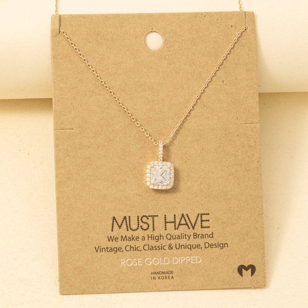 - Perfect for any fashion-forward individual, this trending necklace showcases an alluring gold dipped square rhinestone pendant necklace design. Elevate your personal style effortlessly with this versatile trending necklace, an essential component for a refined wardrobe. Available in G, R, S. This item is sold in packs of 1.