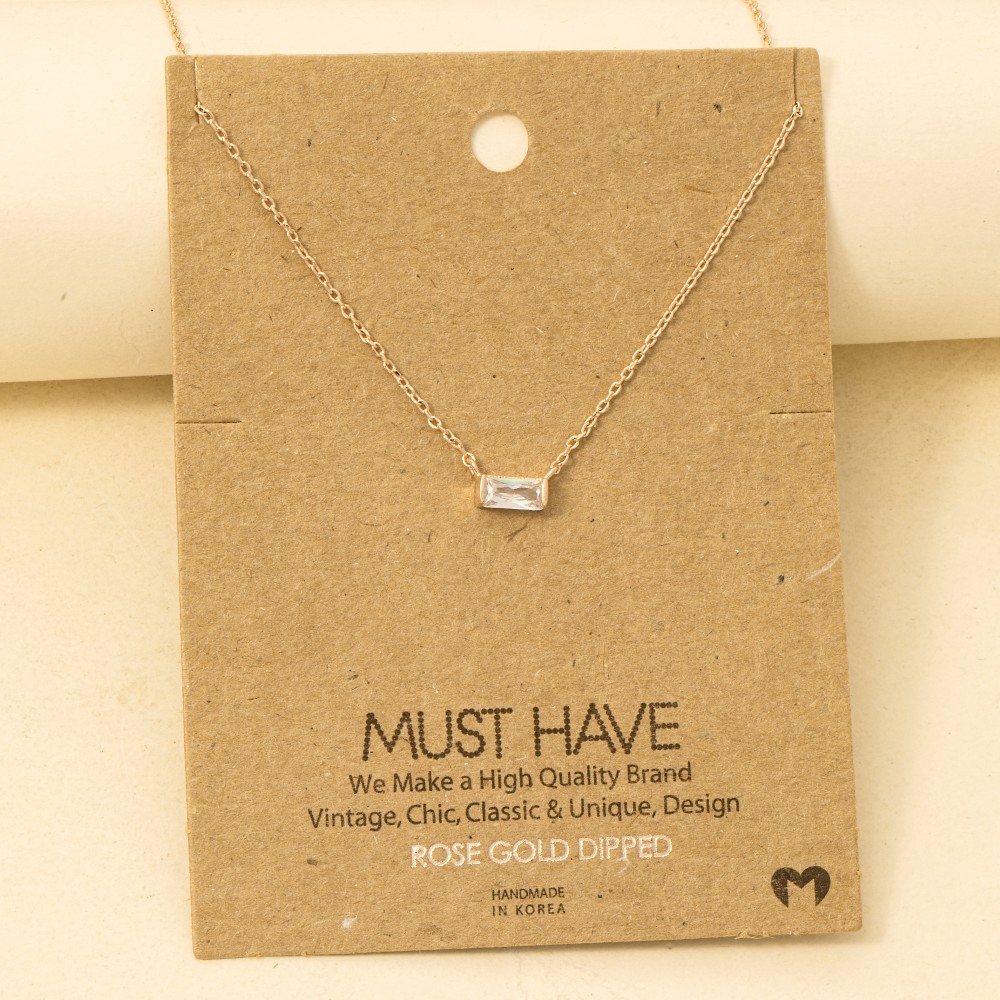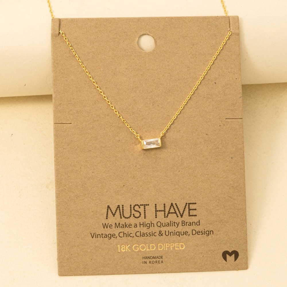 Gold Dipped Square Rhinestone Pendant Necklace