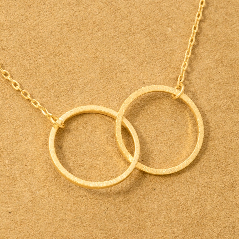 This piece is perfect for those who want to showcase their unique style, this trending necklace brings a one-of-a-kind metallic dual circle pendant necklace design. The perfect way to complete any outfit, whether you're dressing up or keeping it casual. Available in G, R, S. This item is sold in packs of 1.
