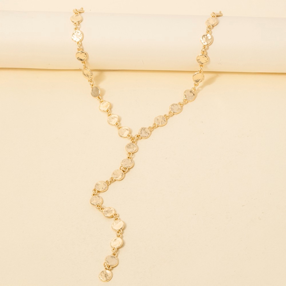 A timeless piece that you'll wear for years to come, this chain necklace showcases an alluring mini metallic coins long design. Add some personality to your outfit with this stylish chain necklace. This item is sold in packs of 12.