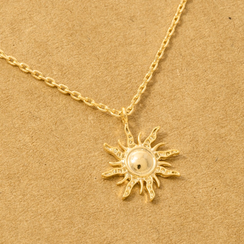 - Make a statement, this trending necklace features a distinct mini sun pendant necklace design. Elevate your fashion IQ with this versatile trending necklace, designed to seamlessly integrate into any style profile. Available in G, R, S. This item is sold in packs of 1.