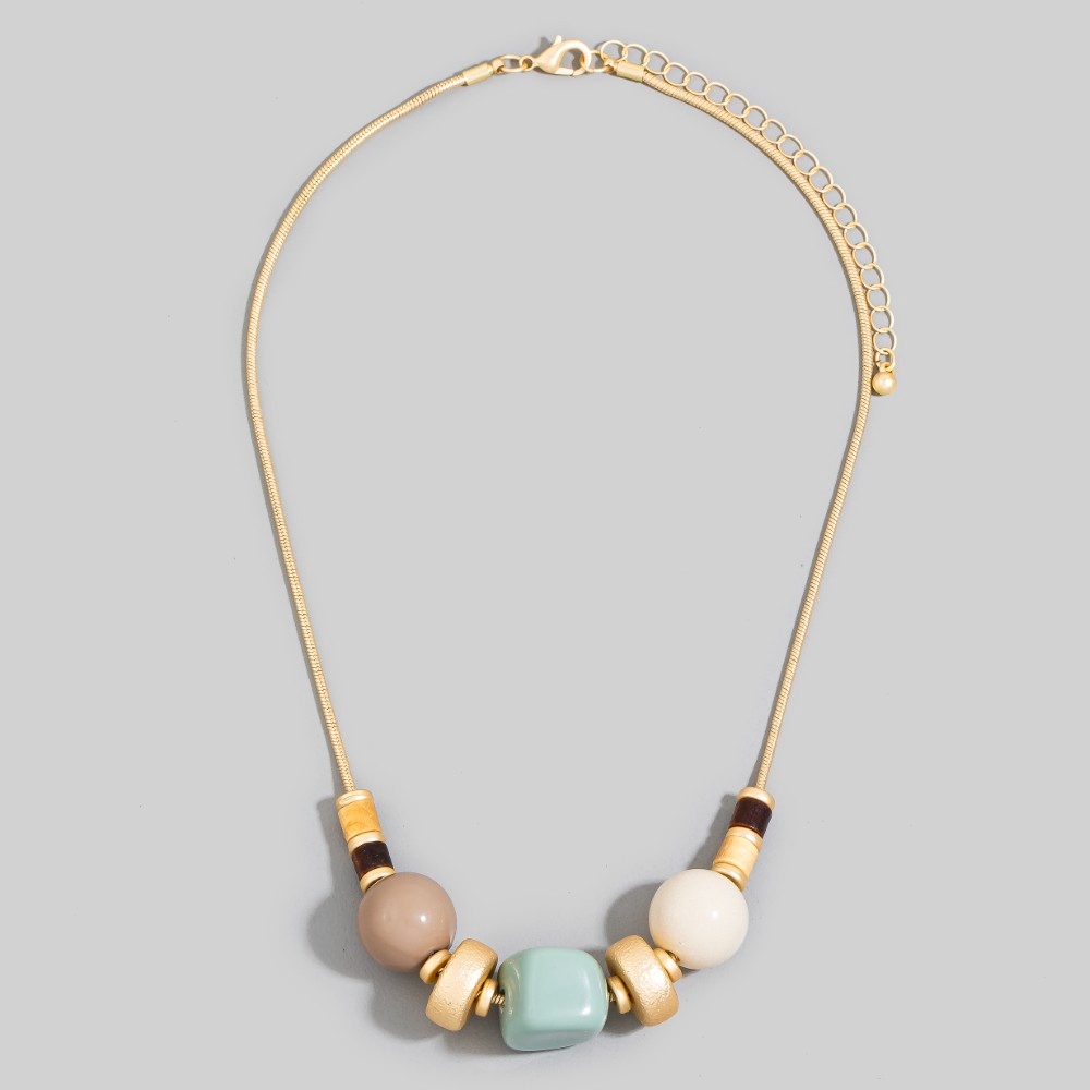 Sleek and modern, this chain necklace boasts a magnificent mixed resin and metallic beads tube design. Infuse your ensemble with a touch of sophistication using this versatile chain necklace, a game-changer in the world of fashion. This item is sold in packs of 1.