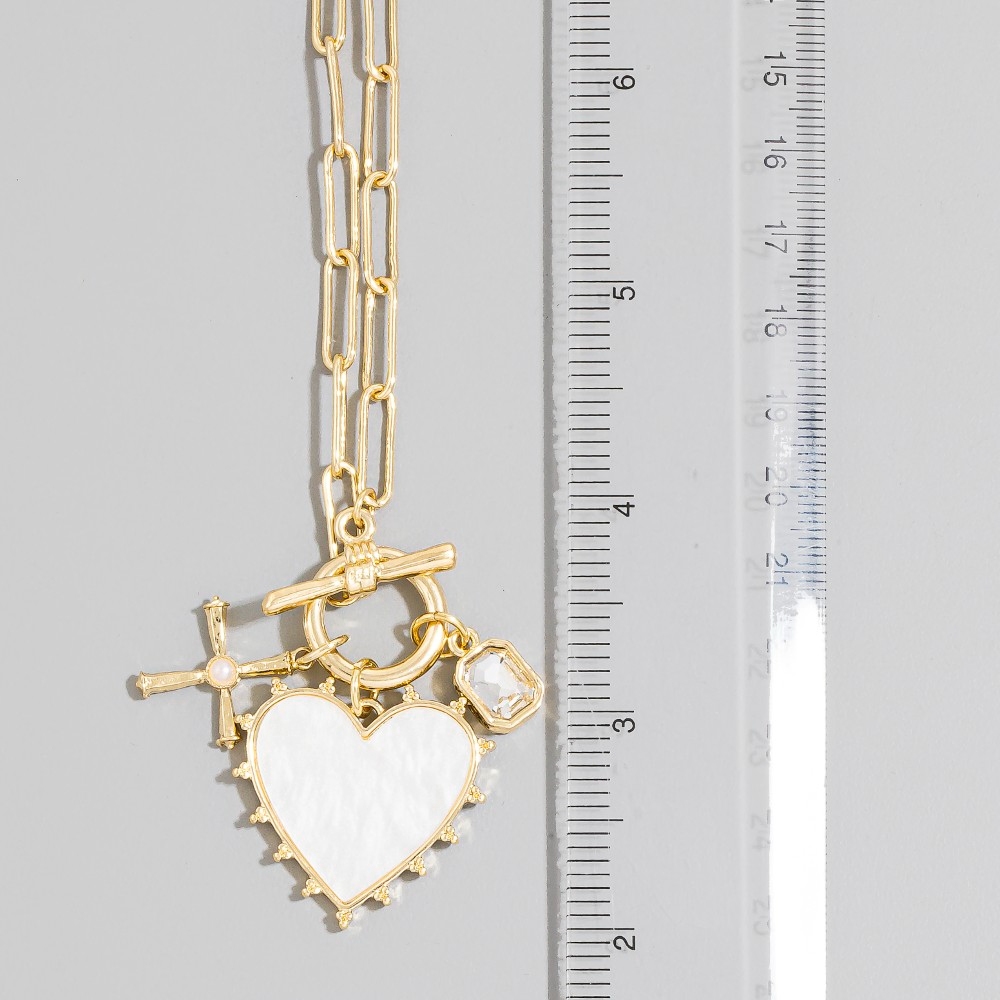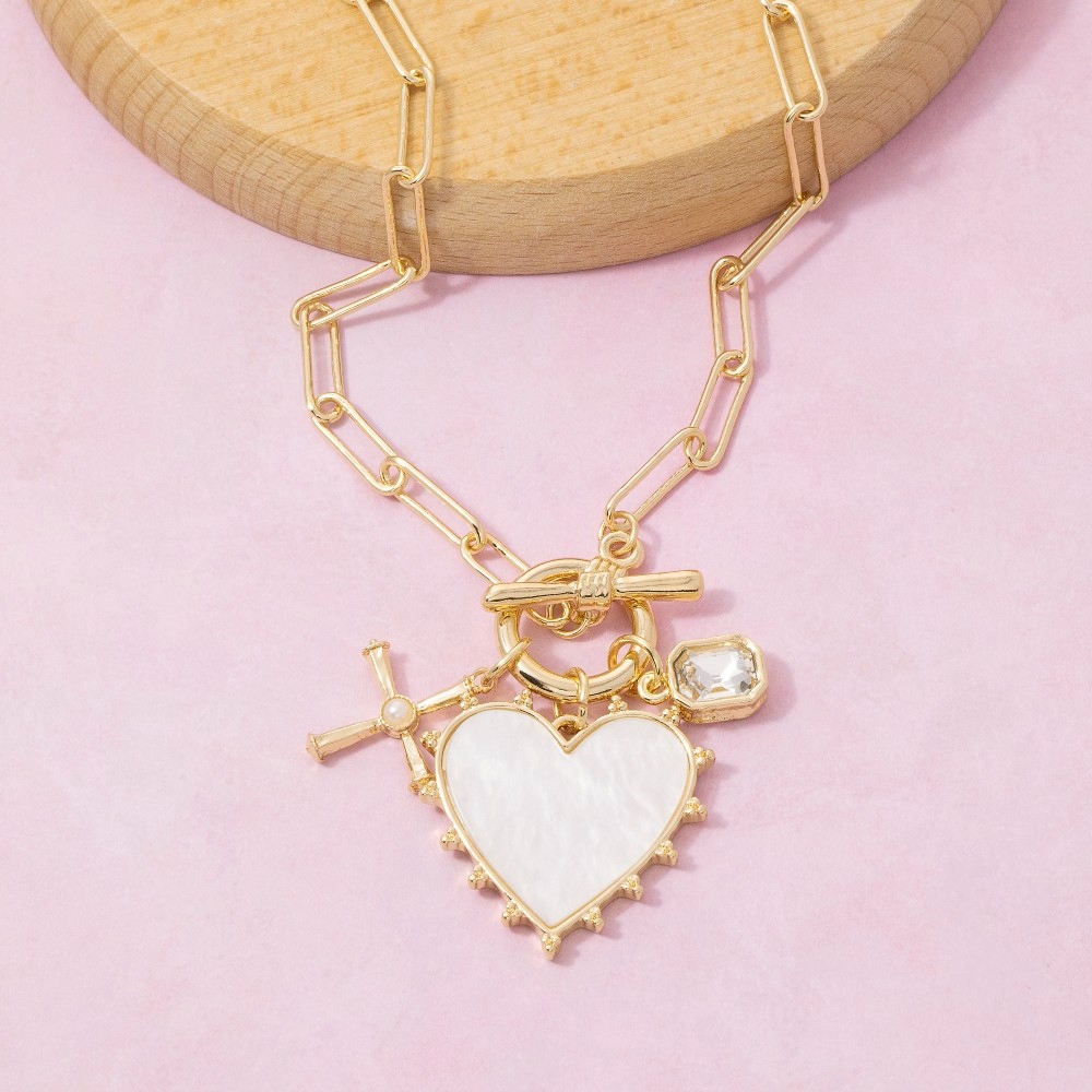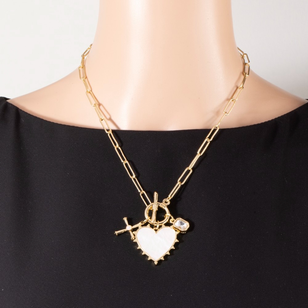 • This piece is both timeless and contemporary, this chain necklace emanates an elegant mother of pearl heart charm toggle paperclip design. Perfect for adding a touch of glamour and sophistication to any outfit, this chain necklace is a must-have. Available in GD. This item is sold in packs of 1.