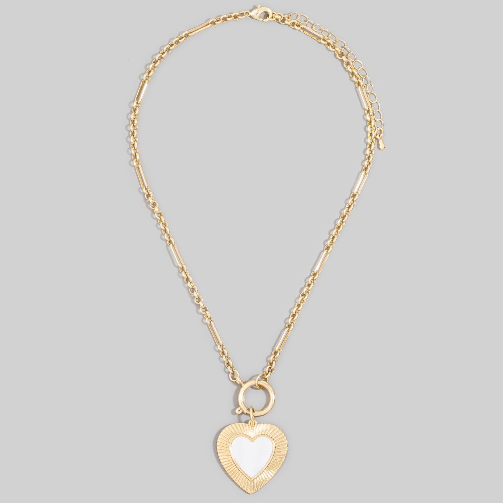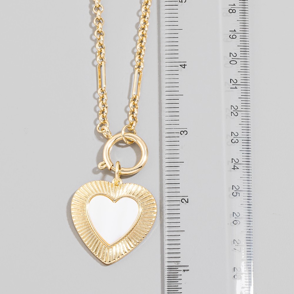 • Uniquely designed and endlessly stylish, this pendant necklace highlights a special mother of pearl heart design. Infuse your ensemble with a touch of sophistication using this versatile pendant necklace, a game-changer in the world of fashion. This item is sold in packs of 1.
