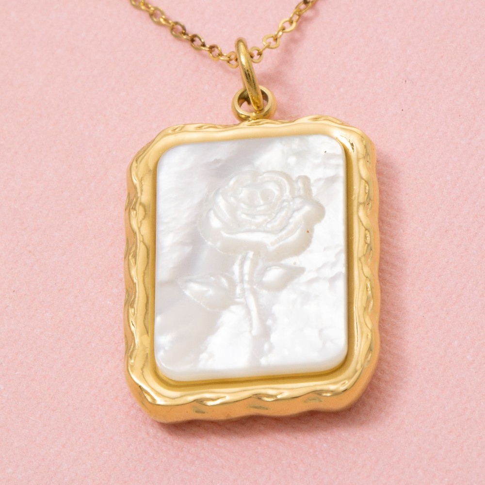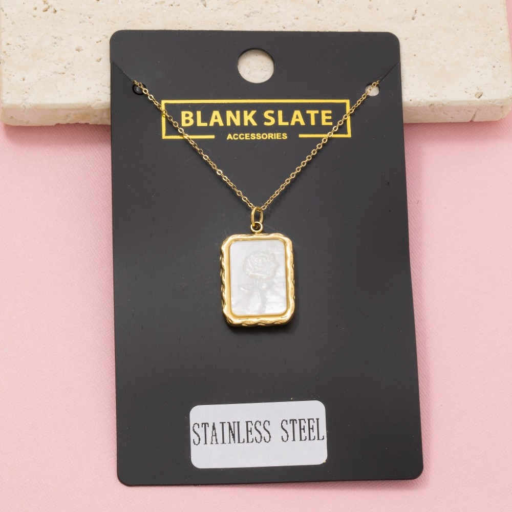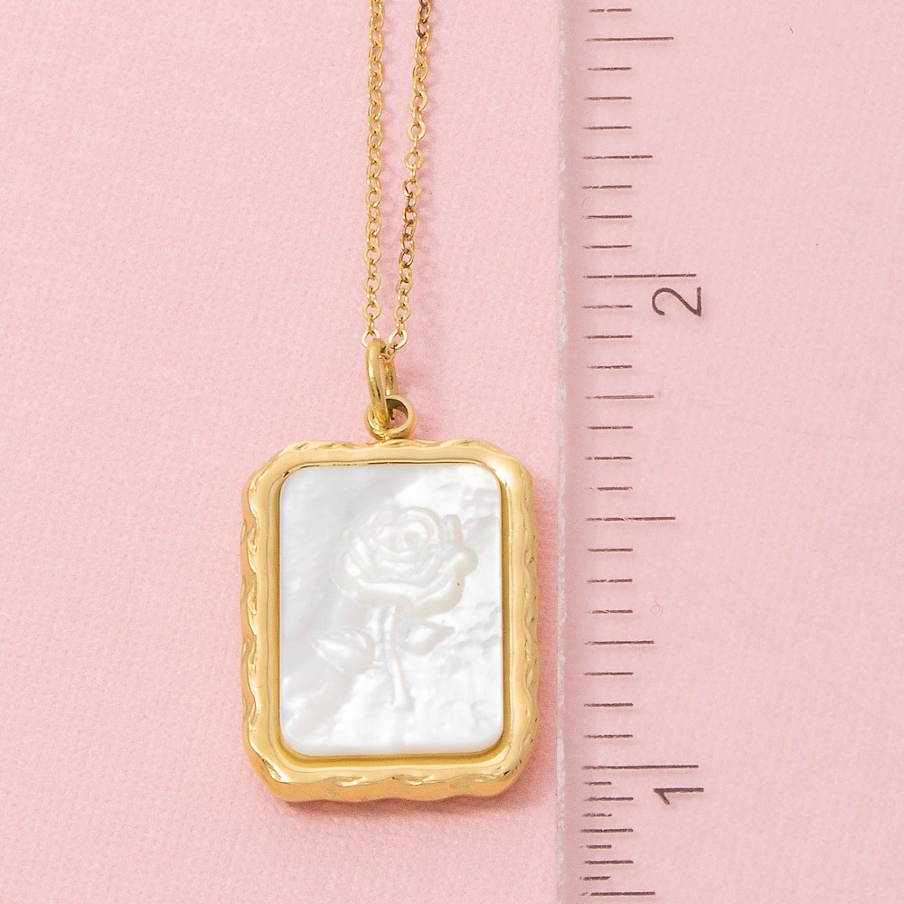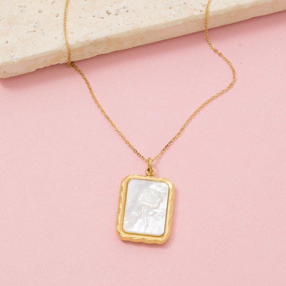 • A versatile and stylish addition to any wardrobe, this pendant necklace highlights a special mother of pearl rose rectangle design. Add a dash of sophistication to your look with this versatile pendant necklace, a must-have for fashion enthusiasts. Available in WH. This item is sold in packs of 1.