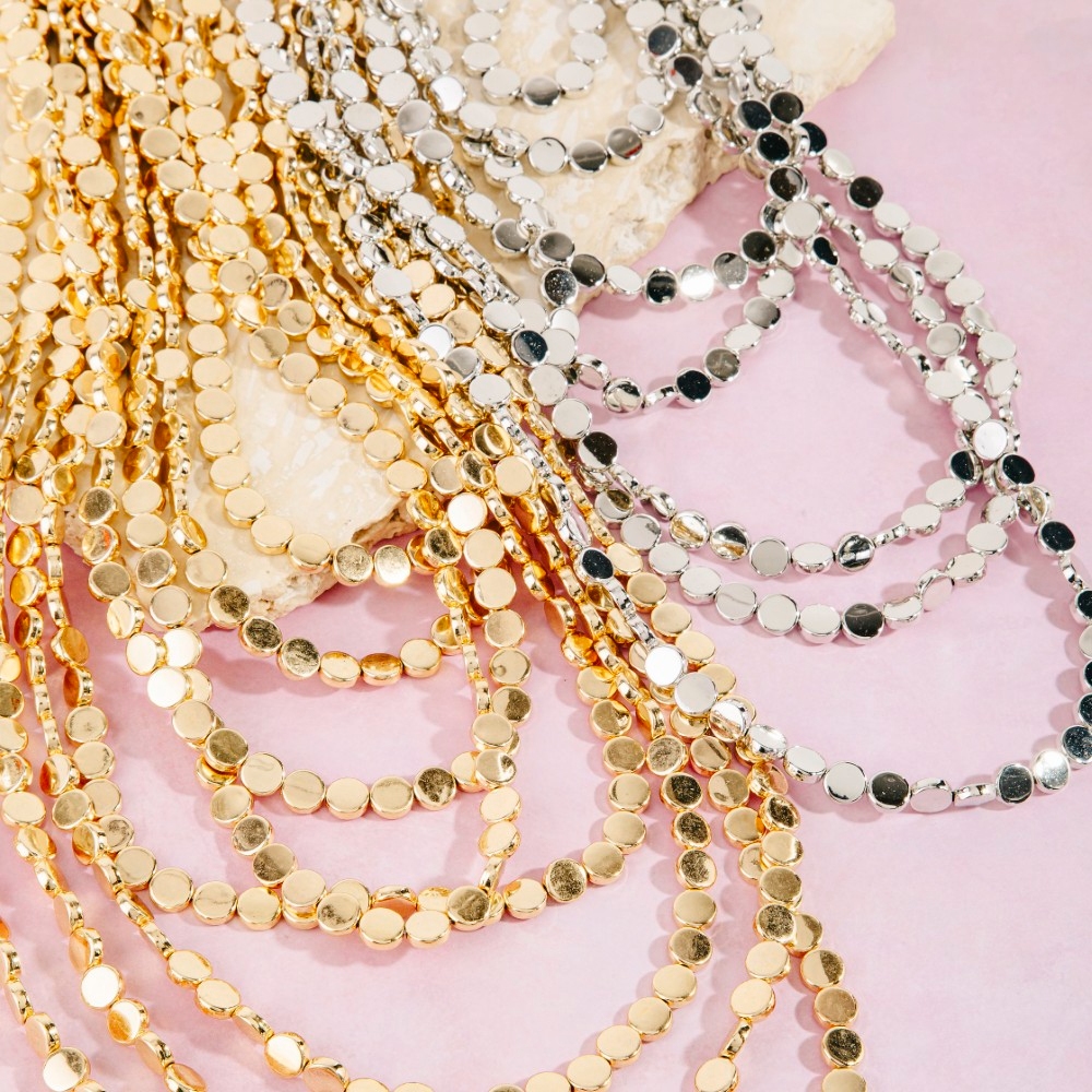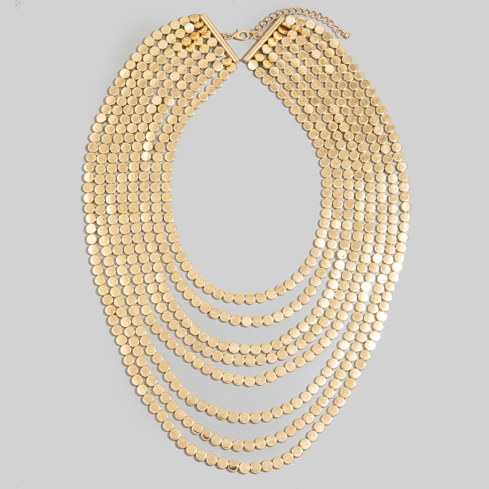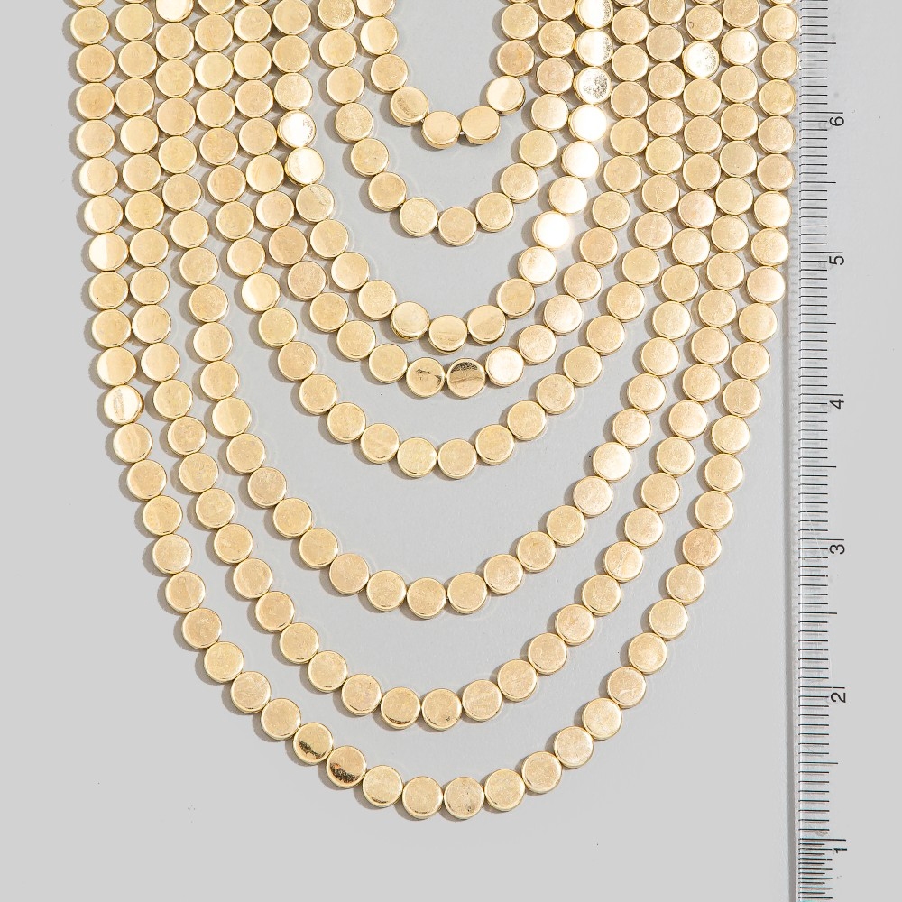 This piece is both timeless and contemporary, this chain necklace carries a charming multi layered mini circle link statement necklace design. Add a dash of sophistication to your look with this versatile chain necklace, a must-have for fashion enthusiasts. Available in G, S. This item is sold in packs of 1.