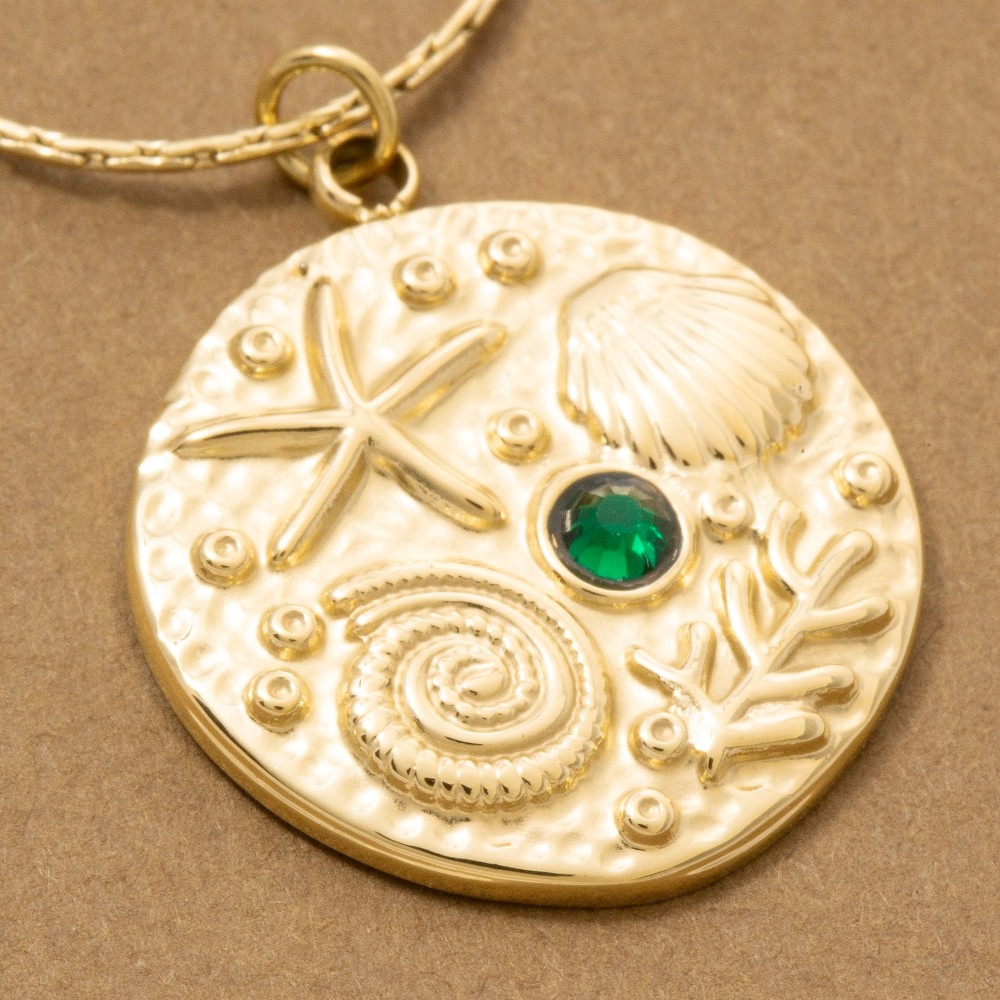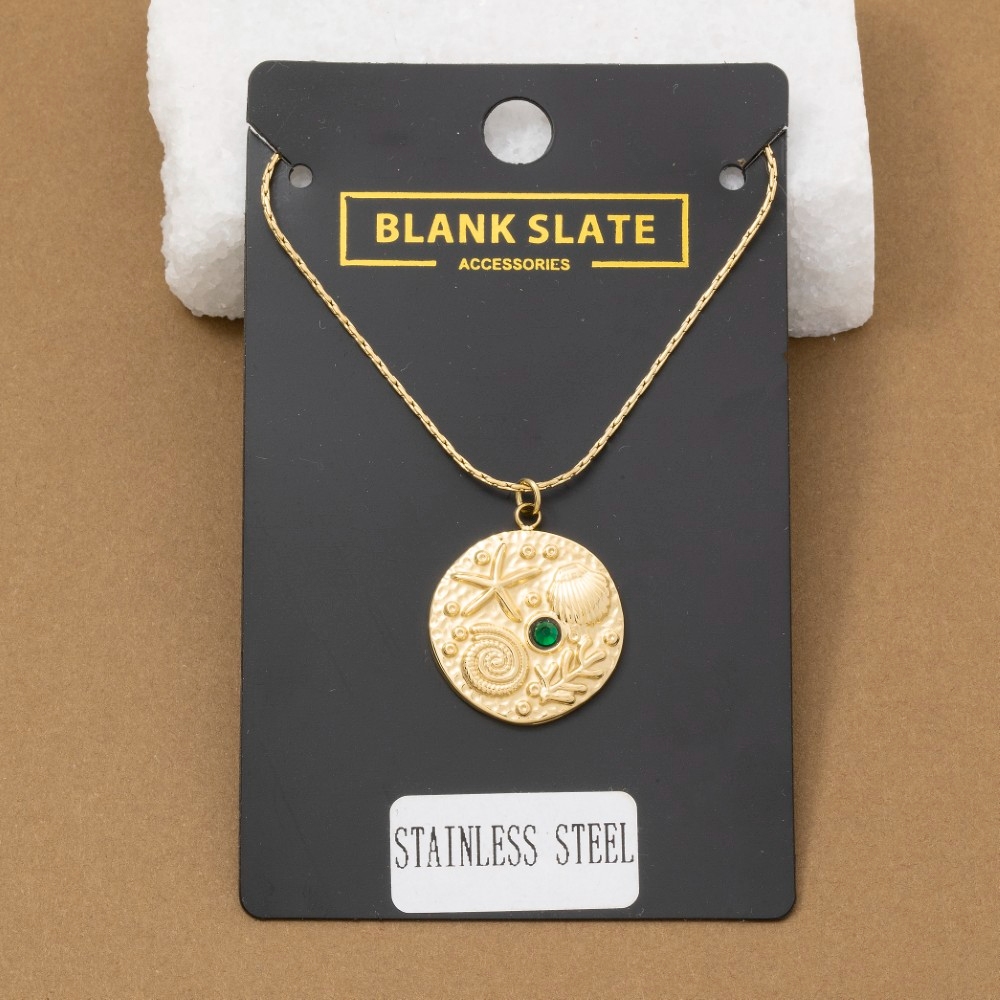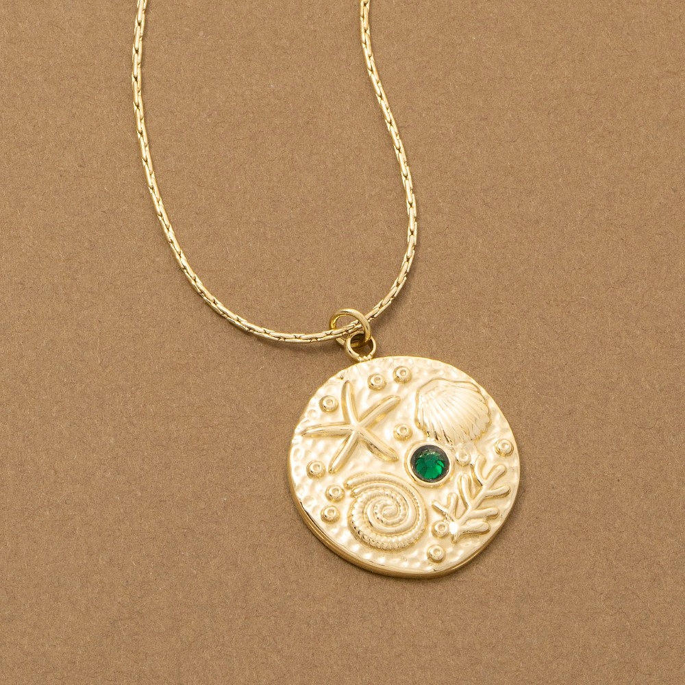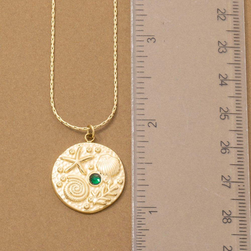 Add a touch of elegance and glamour to your look, this pendant necklace contains a special ocean motif crystal accent coin design. Perfect for adding a pop of color or texture to any outfit, this pendant necklace is a must-have. Available in G. This item is sold in packs of 1.