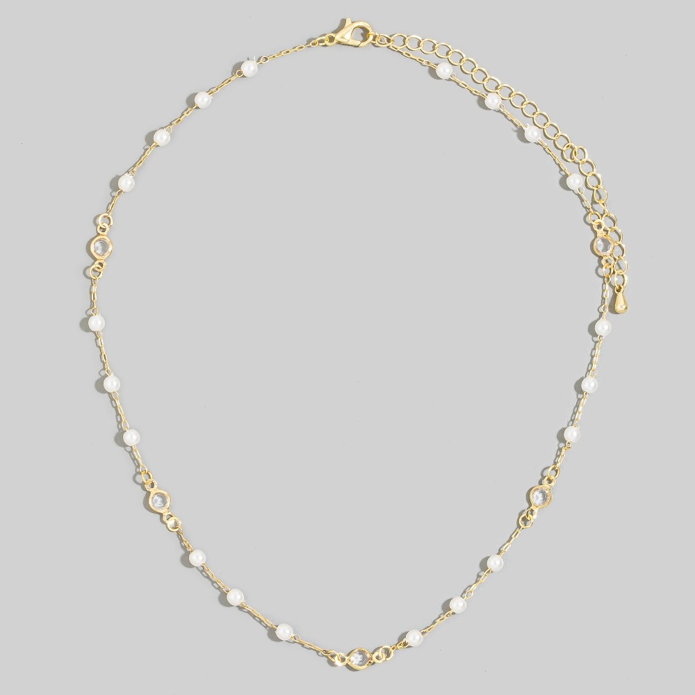 • Perfect for any occasion, this chain necklace introduces an exceptional pearl and crystal station design. Elevate your fashion game with this versatile chain necklace, seamlessly integrating into your signature style. Available in GDCRM. This item is sold in packs of 1.