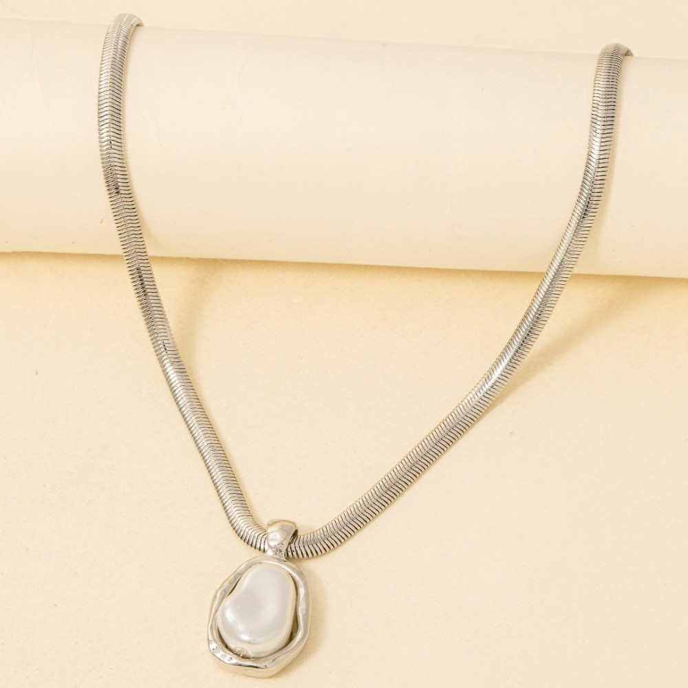 Add a touch of elegance and glamour to your look, this chain necklace embodies a sophisticated pearl pendant herringbone design. Redefine your fashion identity with this versatile chain necklace, a timeless piece that complements any wardrobe. Available in GDCRM and RHCRM. This item is sold in packs of 1.