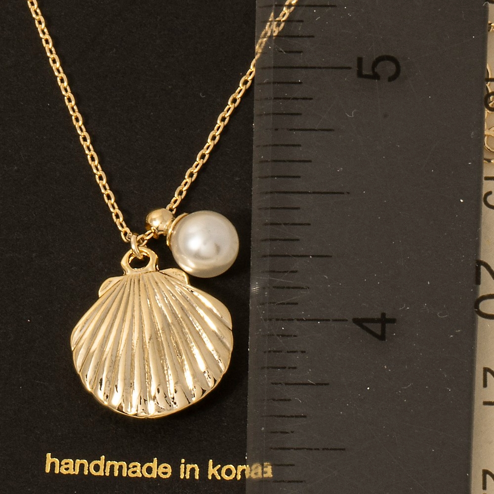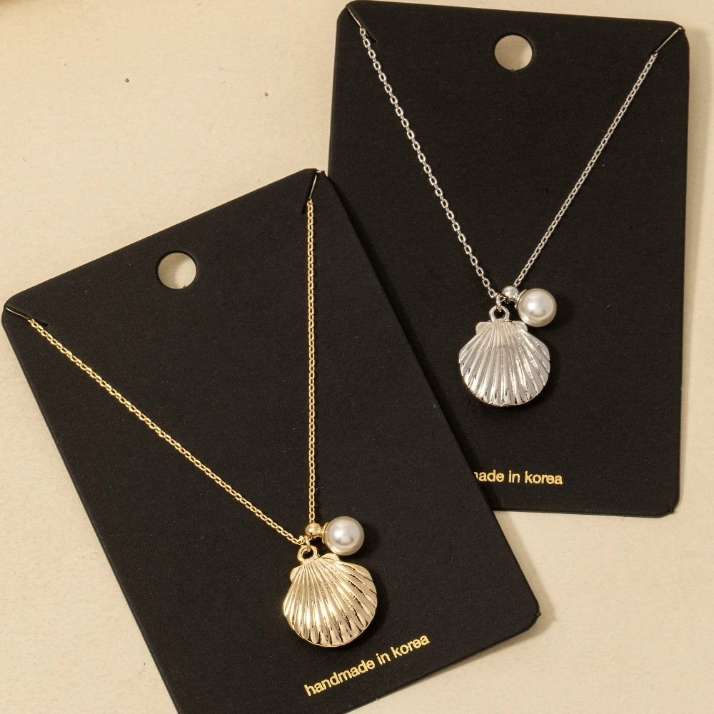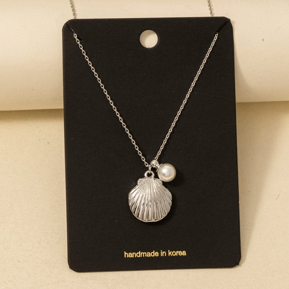 - Uniquely designed and endlessly stylish, this necklace adds a distinctive pearla and clam shell pendant design. Infuse a hint of luxury into your daily attire with this versatile necklace, a must-have for those who appreciate timeless elegance. Available in G. This item is sold in packs of 1.