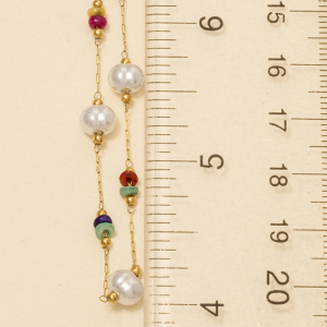 Light Earth Tone Resin And Metallic Beaded Necklace