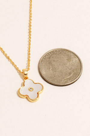 Gold Dipped Cubic Zirconia Stud Clover Pendant Necklace