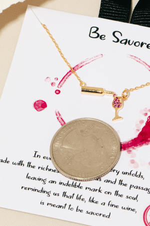 Gold Dipped Cz Pouring Wine Pendant Necklace