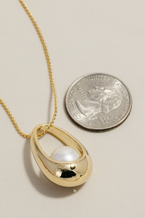 Tear Stone And Rhinestone Bow Pendant Necklace