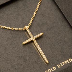 Secret Box Gold Dipped Thin Cz Cross Pendant Necklace