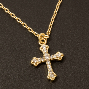 Gold Dipped Pave Cz Cross Pendant Necklace