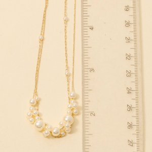 Pearl Bead Clusters Layered Dainty Chains Necklace