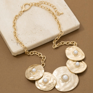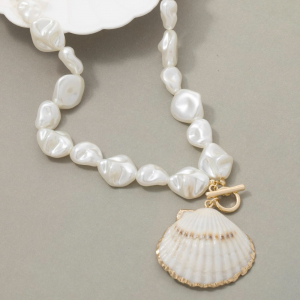 Metallic Accent Sea Shell Pendant Pearl Beaded Necklace