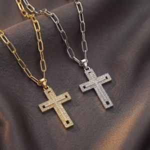Gold Dipped Cz Pave Cross Pendant Necklace