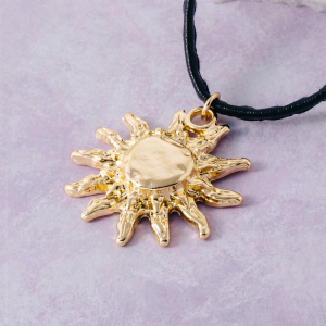 Adjustable Cord Warped Metal Disc Pendant Necklace
